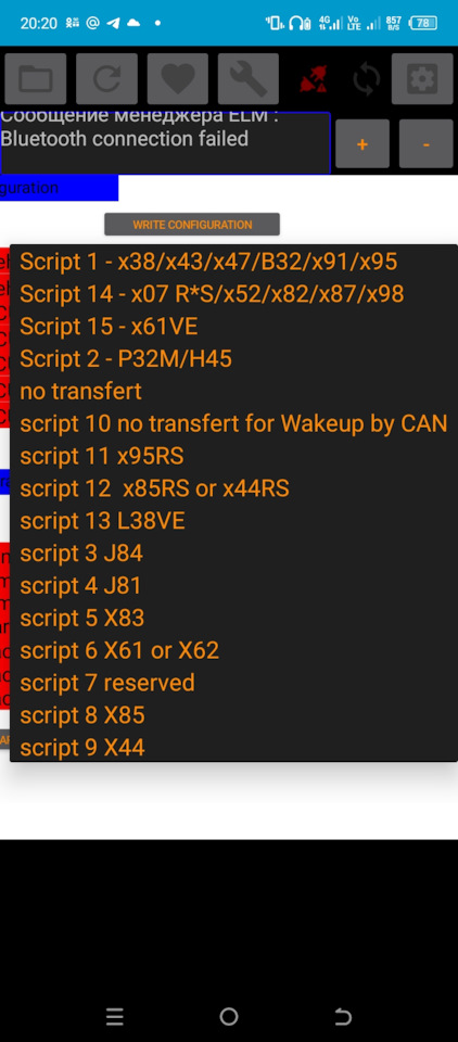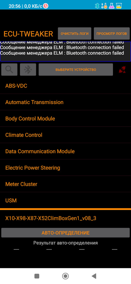 Не выбрано BT-соединение(нет связи с блютуз елм327)