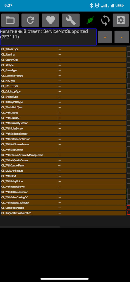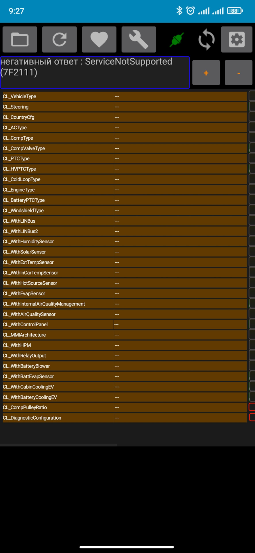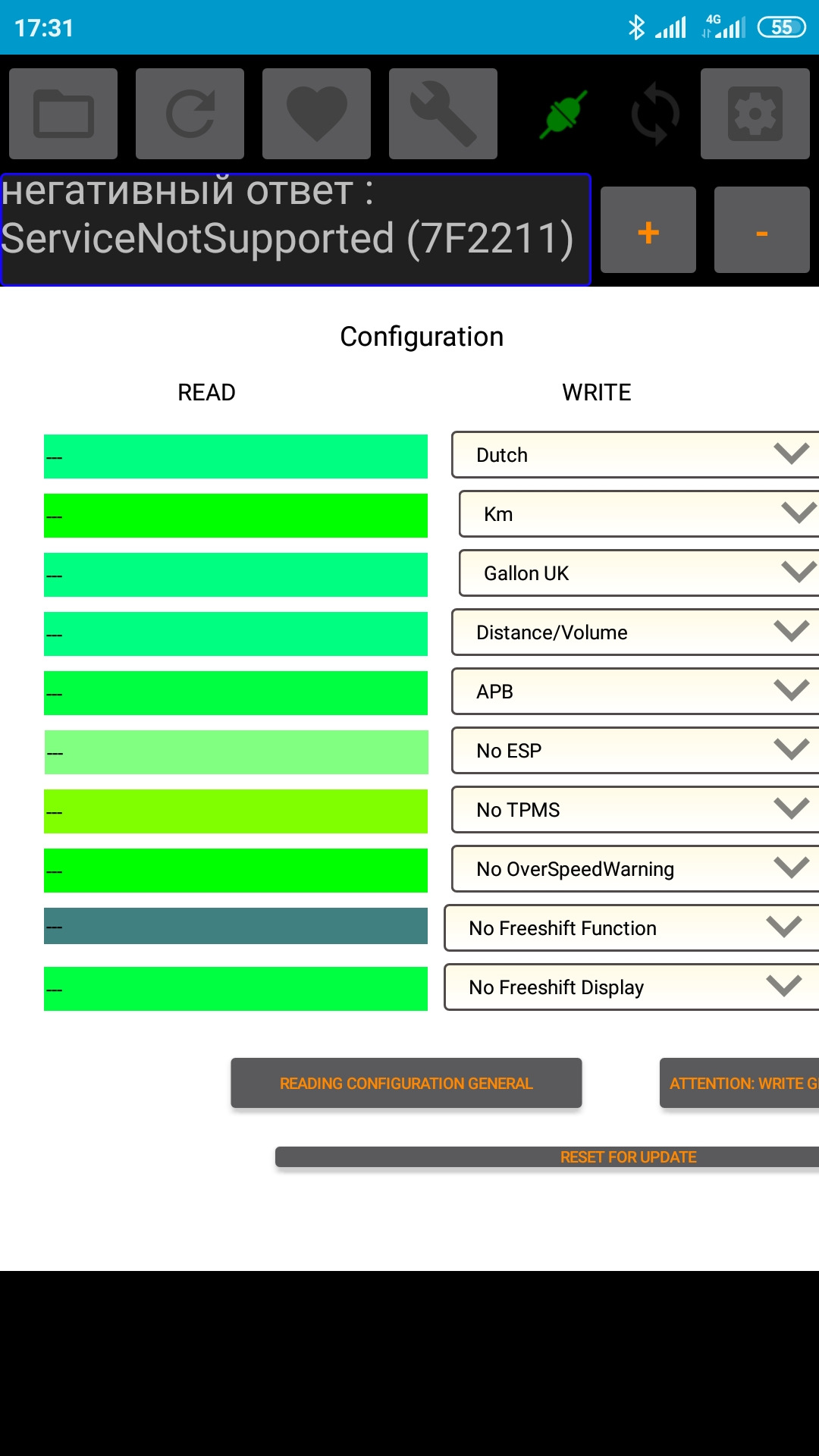 Добрый день! Подскажите что делать. Выскакивает сообщение ServiceNotSupported (7F2211) и автоопределение не подсвечивает блоки ни зелёным ни красным. Время отклика ставил на максимум как написано. Авто Рено Колеос 2008 из Франции. Заранее спасибо за ответ!