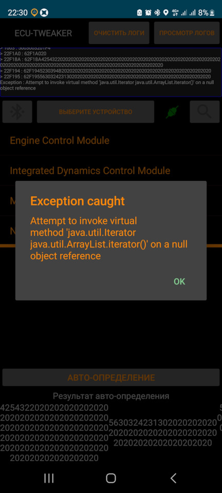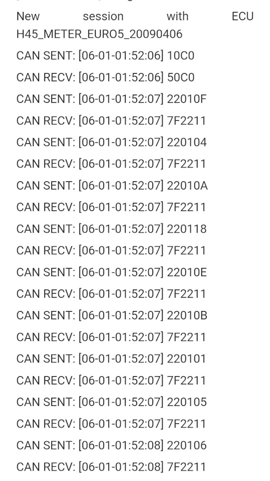 Какой блок читаете -двигатель или другое? И дайте лог посмотреть. Лог уже сохранен, подключаться к авно уже не обязательно.