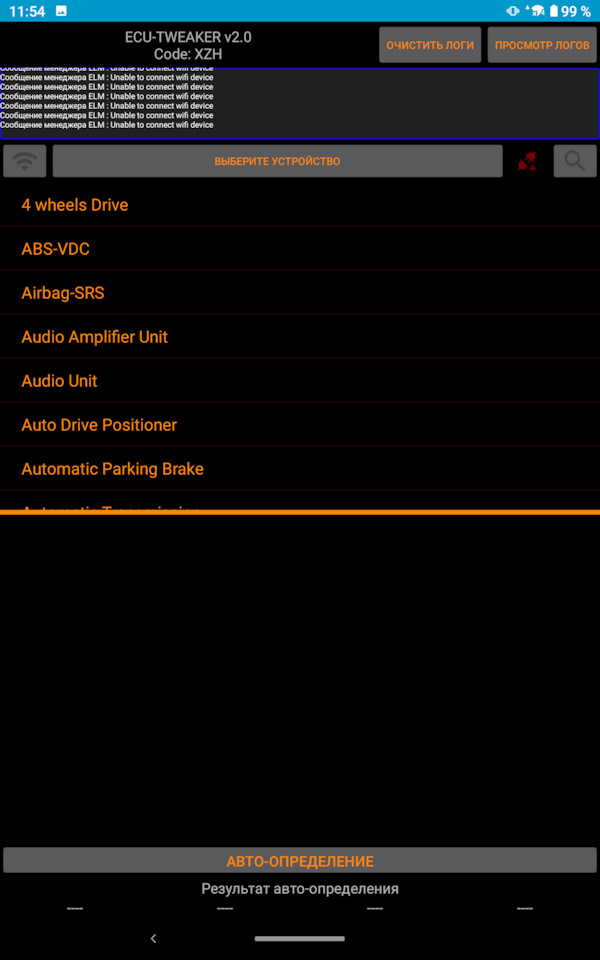 ELM программа не может подключить по WIFI, хотя сам планшет подключен к ELM по WIFI. Базу видит. Определение места включено. С кар сканер работает корректно. А вот ECU Tweaker не подключается.