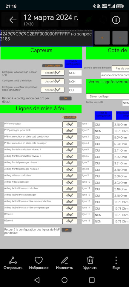 Здравствуйте. Не подскажете можно ли в программе поменять конфигурацию подушек безопастности рено лагуна 2