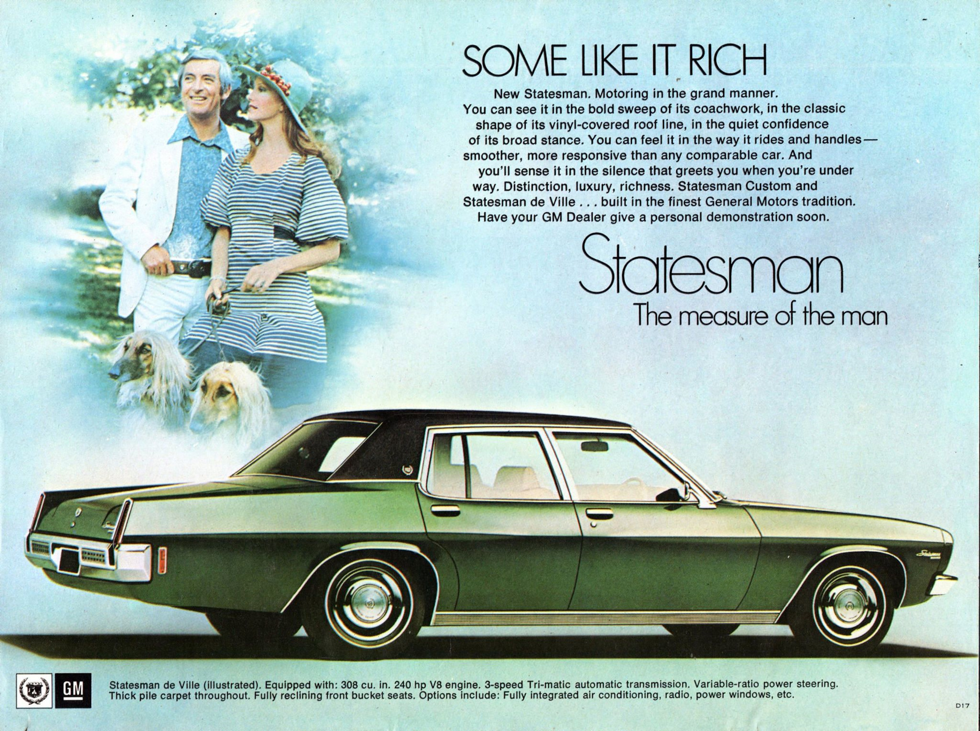 Тем временем, в середине 1960-х годов руководство GM Holden (GMH) приняло другое решение: создать отдельный, более престижный бренд, автомобили которого были бы максимально дистанцированы от остального модельного ряда, с улучшенным обслуживанием и дилерским сервисом. С этого момента и началась полноценная работа над большим седаном, который должен был составить конкуренцию моделям от Ford и Chrysler. Тогда же было утверждено и название новой автомобильной марки — Statesman. По замыслу GMH, флагманский Statesman должен был заменить менее крупные и более простые седаны Holden HG Brougham, которые выпускались с 1968 года как временная мера перед запуском отдельного бренда.