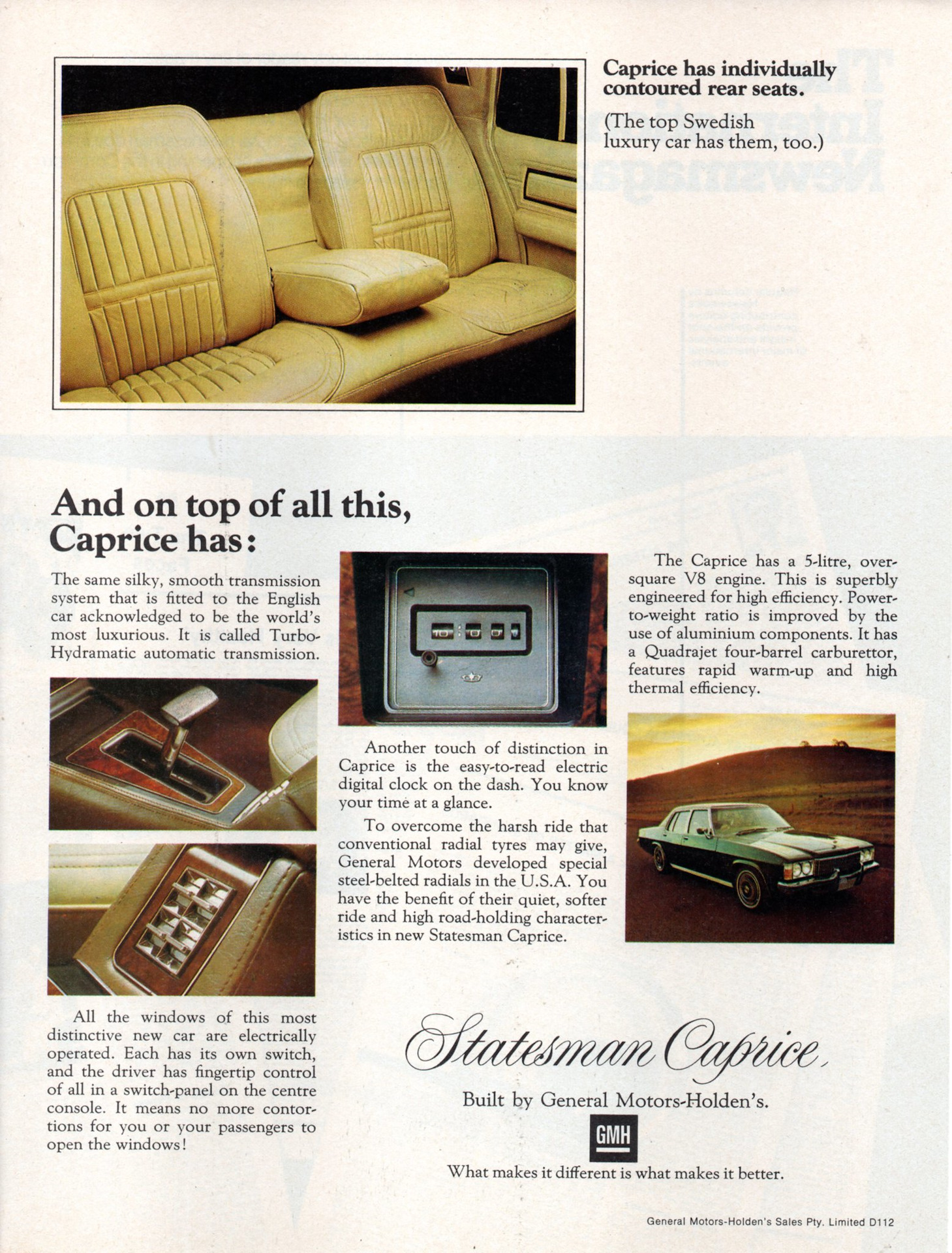 В 1975 году GM Holden начал продажи австралийской модификации Statesman Caprice на южноафриканском рынке, представив её в качестве флагманской версии модели. Она отличалась богатым базовым оснащением, передней решёткой, кузовным декором и уровнем дилерского обслуживания: для Statesman были оборудованы отдельные выставочные залы и сервисные площадки, в связи с чем Caprice австралийской сборки стоили дороже Chevrolet AJ Caprice Classic на 25-30%.