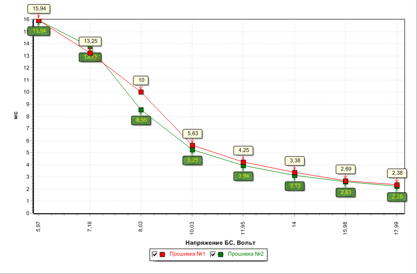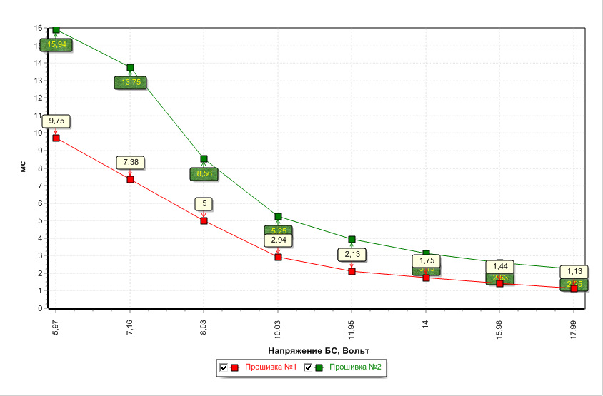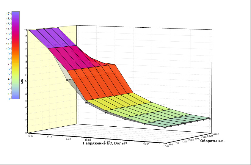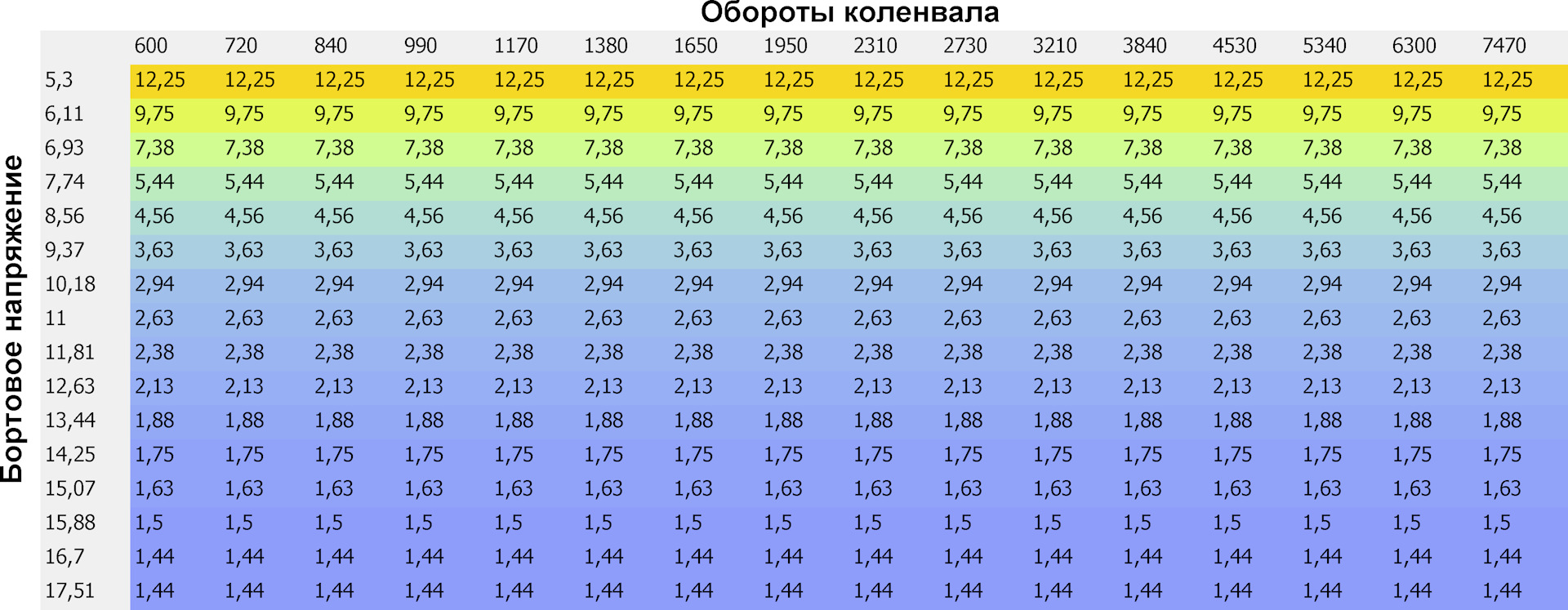 Я построил таблицу на катушку 8V и она практически совпадала с ой то забита в прошивку. Потом забил от индивидуальных катушек и получил совершенно иное время накопление, оно было намного ниже чем забито в прошивку. Теперь я не удивляюсь почему так часто вылетают катушки на 16V, судя по времени впрыск они большее время греются как и ключи которые их коммутируют.
