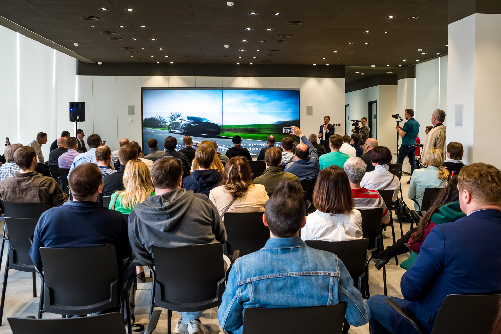 Все агрегаты, включая коробку, тормоза, и даже кресла — собственной разработки Hyundai, именно это позволяет существенно снижать стоимость компонентов и автомобиля в целом. Вообще, говоря о стоимости, надо сказать, что в России машина дешевле, чем в Европе, очевидно, что ради этого пришлось отказаться от ряда опций — насколько я понимаю, на наших машинах не будет умных фар, систем удержания в полосе и автоматического торможения.