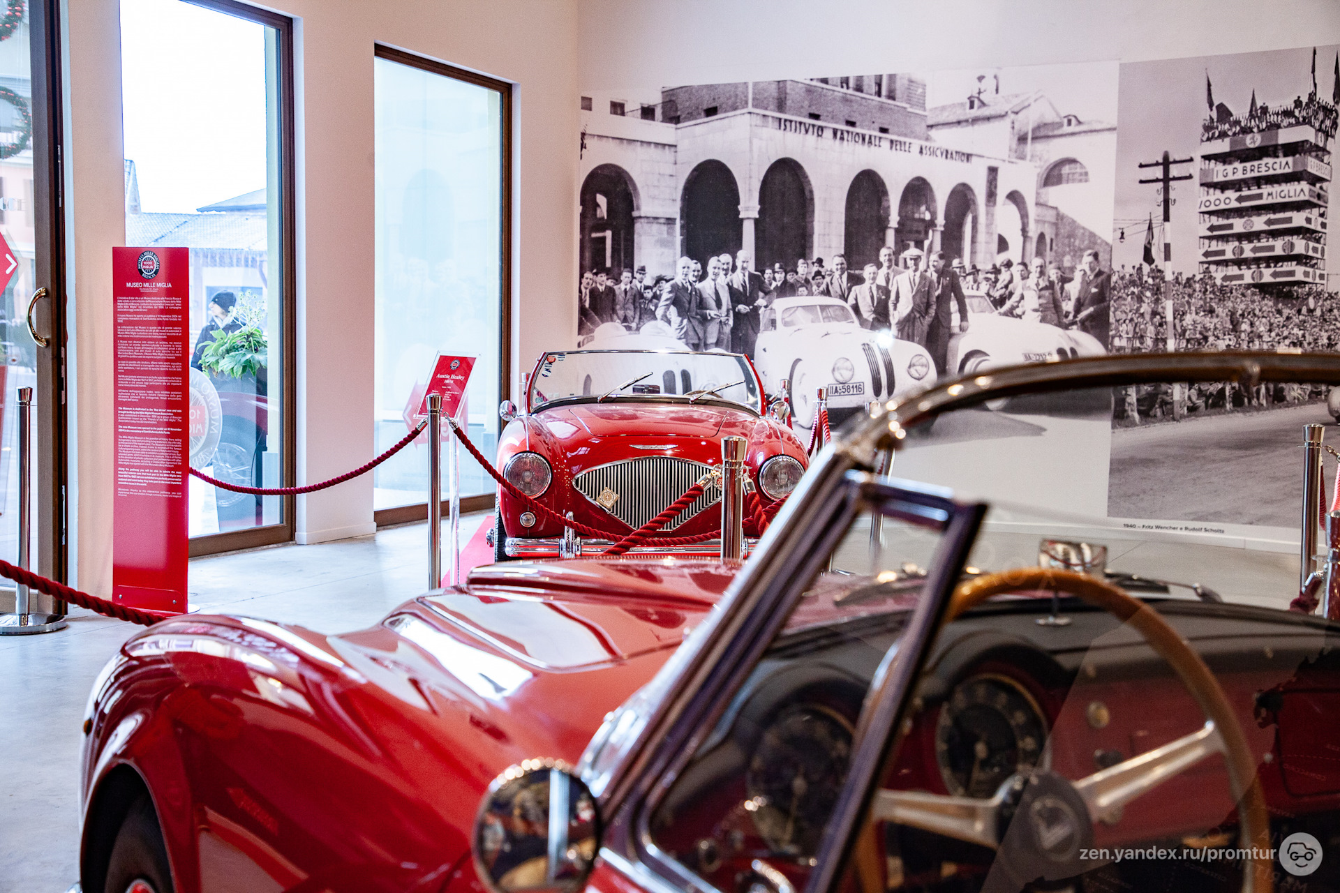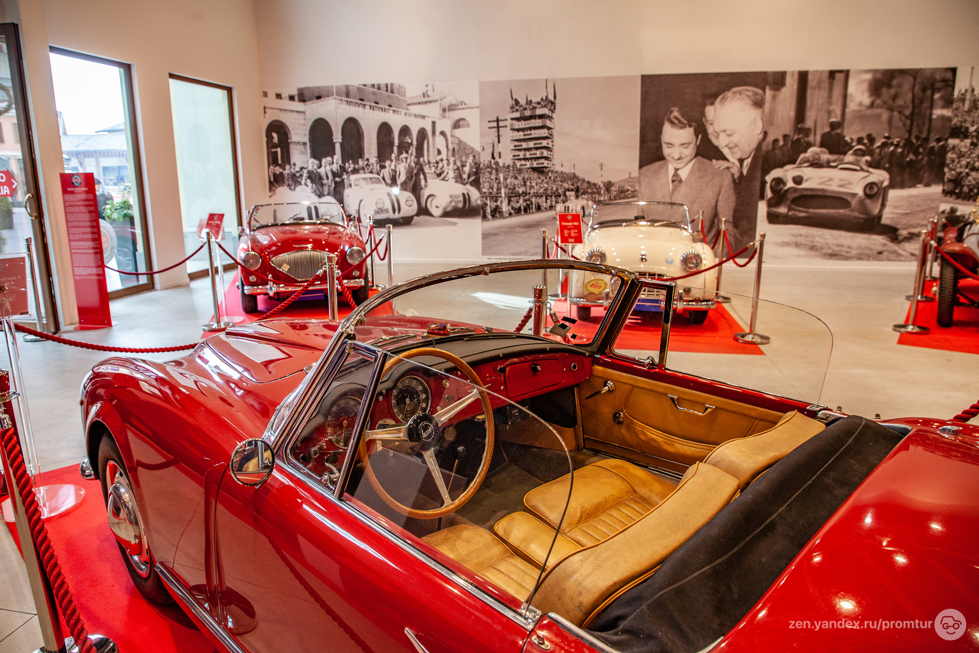 Не вижу смысла выставлять редкие и дорогие машины только для того что бы кто то купил шапочку или тапки. Уверен что публика везде одинаковая и те люди которые интересуются и знают историю техники . мало интересуются тряпками.Дешевле было бы нанять девок .одеть их в костюмы для ролевых игр и пусть они дифилируют как у самого магазина так и в нем. результат был бы неплохой и продажи наверняка бы увеличились. Итальянцы народ простой и мало интересующийся индустриальным наследием, скорее магазин ориентирован на иностранцев .
