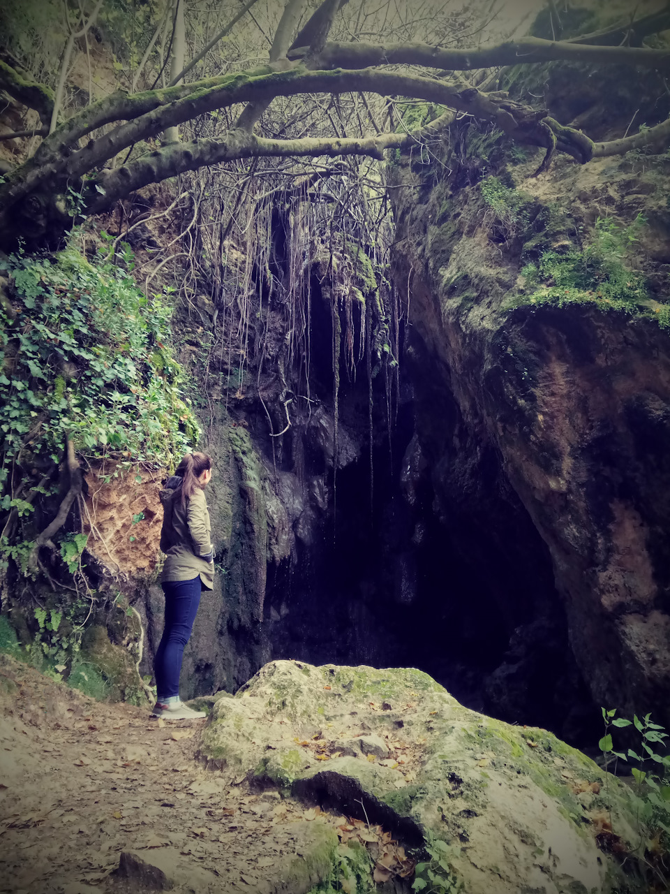 Дорога знакома – по ней мы ездили к Миломери, только сейчас чуть дальше. Вот и нужный нам съезд с асфальта, который ведет вниз, петляя по склону. Навигатор, кстати, показывал всего семьсот метров пути. Немного удалось проехать на машине, но дальше крутизна склона возросла, и мы решили, что дойдем пешком – каких-то полкилометра! По этой же причине оставил телефон с навигатором в машине.