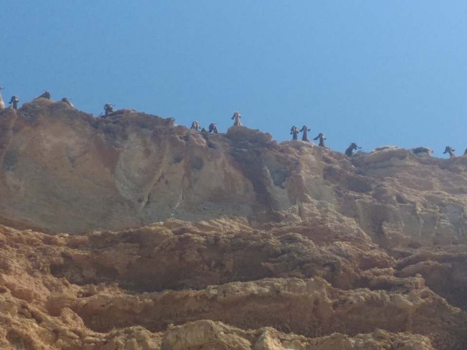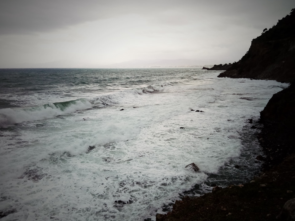 Можно немного расслабиться, к тому же место оказывается премилым: песчаный пляж, прилегающие невысокие скалы с пещерами. Правда, море сильно волнуется, а на информационном щите написано, что купание опасно, и красуются устрашающие картинки. Но солнышко так тепло и приятно греет, что само по себе нахождение на пляже – большое удовольствие.