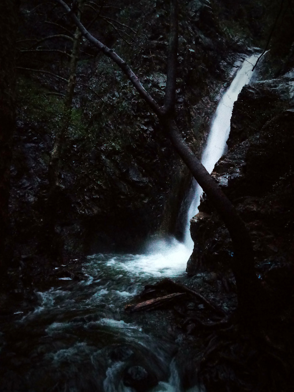 Впрочем, сумерки только придали атмосферности месту. Висевшая в воздухе водяная пыль, мокрые скалы, шум низвергающейся и бегущей по ущелью воды – можно было ощущать и чувствовать это снова и снова.