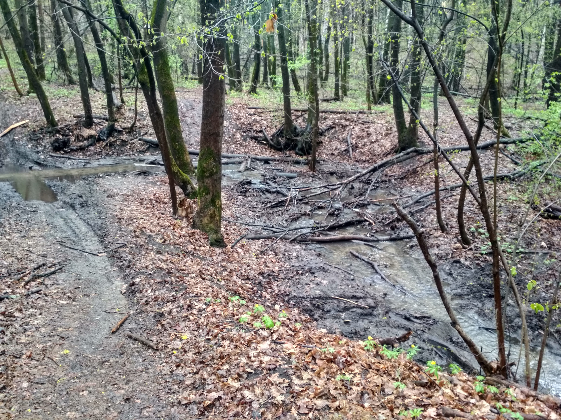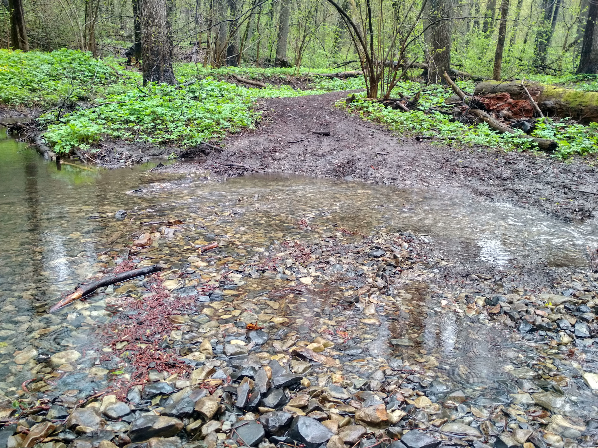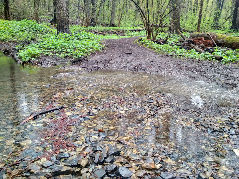 Видно, что до меня уже долго никто не переезжал ручей. Вода кристально чистая. Была, до того, как я поехал: