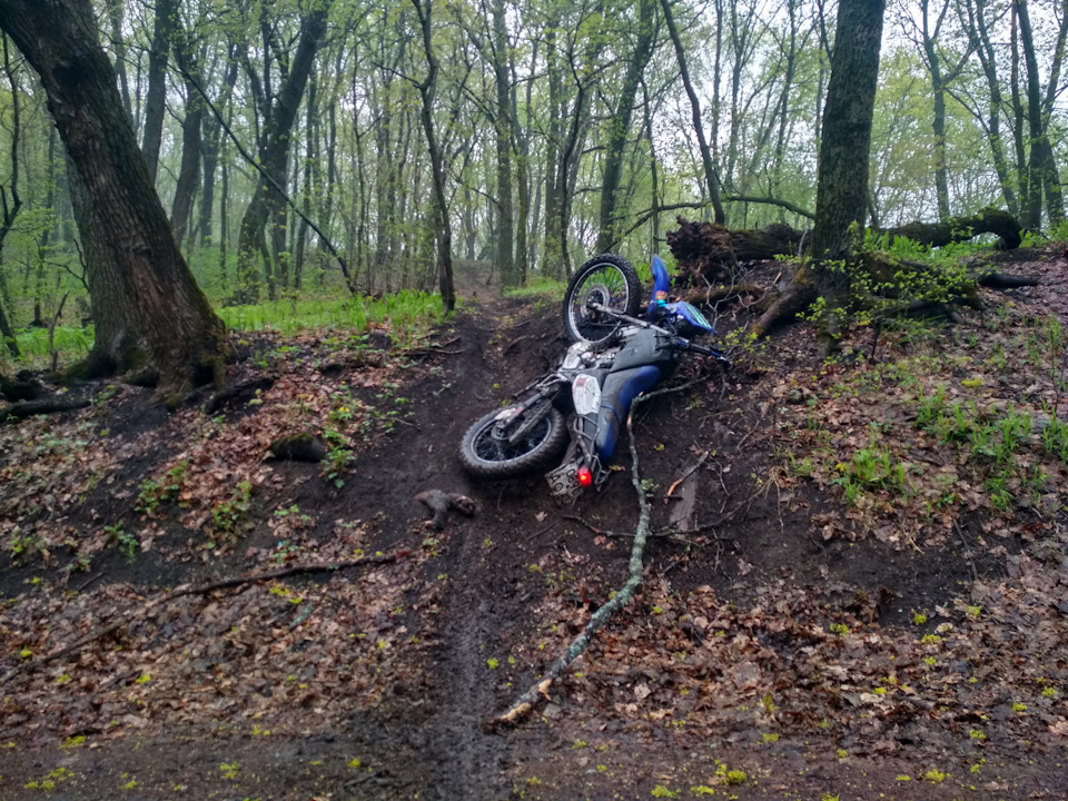 На подъеме от нижнего Малинового — завалил мот, т.к. не хватило зацепа.