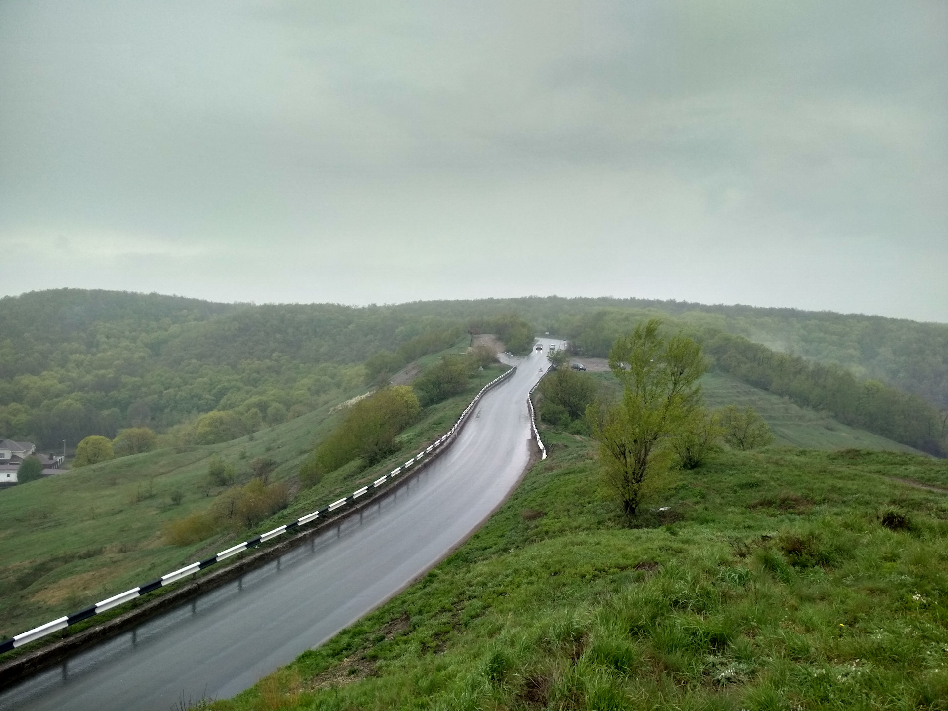 И тут я решил перейти дорогу, чтобы сфоткать общим планом спуск. На фото видно мои следы на дороге))
