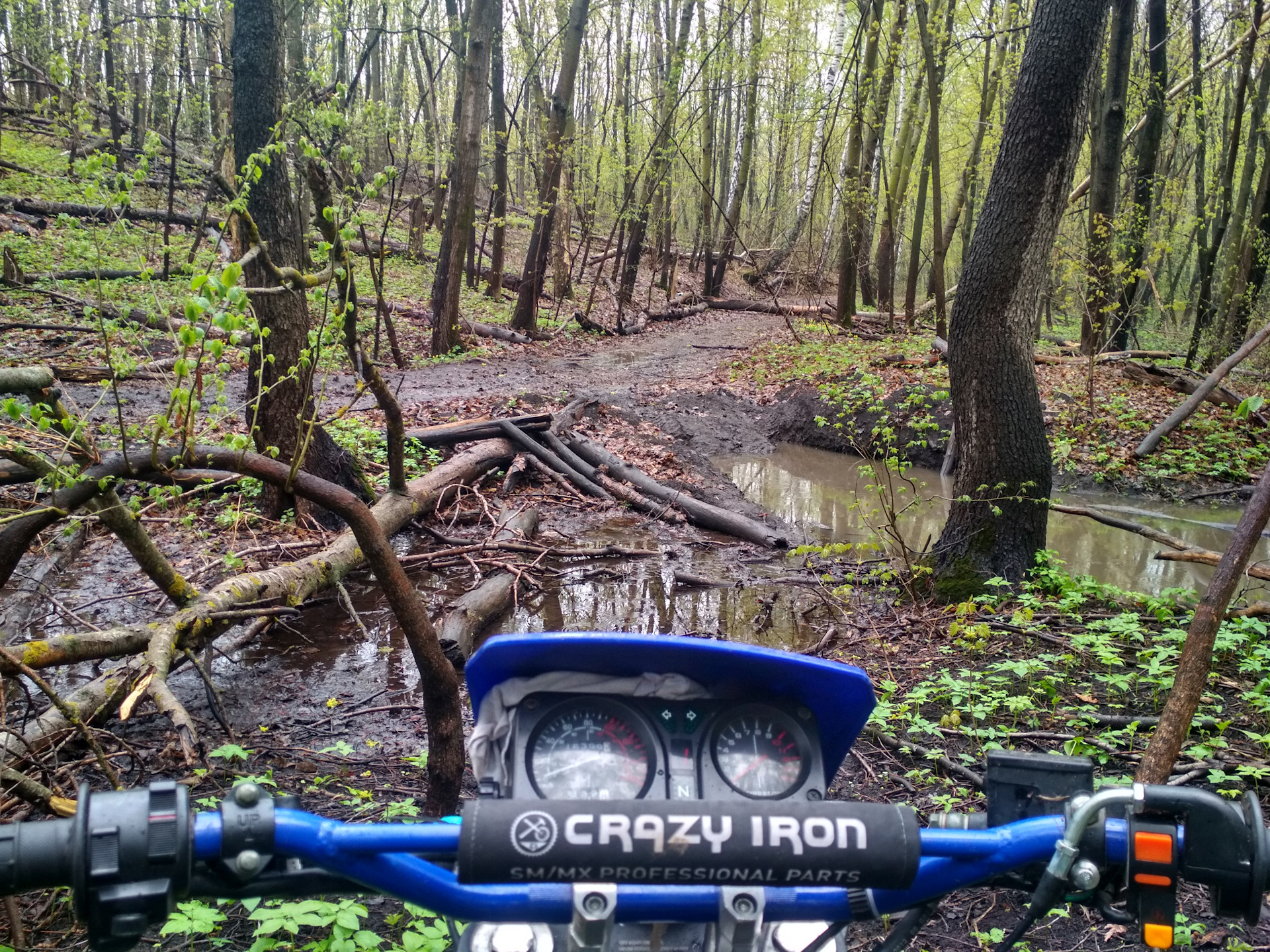 Дальше я поехал до Малинового родника, хотя спуск к нему оказался очень скользкий, а я на универсальной резине, не предназначенной для грязи от слова совсем. Но когда такие вещи останавливали настоящего китайского эндуриста?! )))
