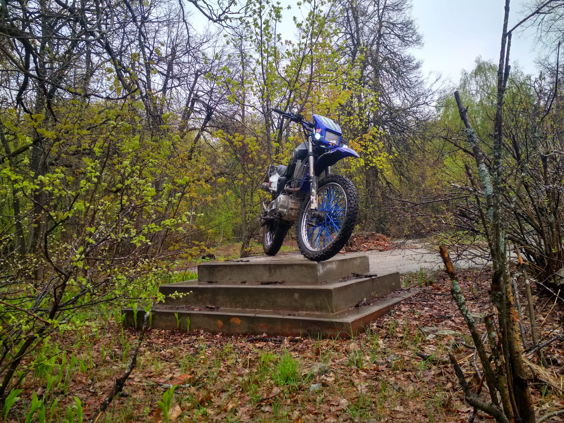 Дальше меня потащило в заброшенный лагерь, где было решено повторить фото мотоцикла на постаменте.