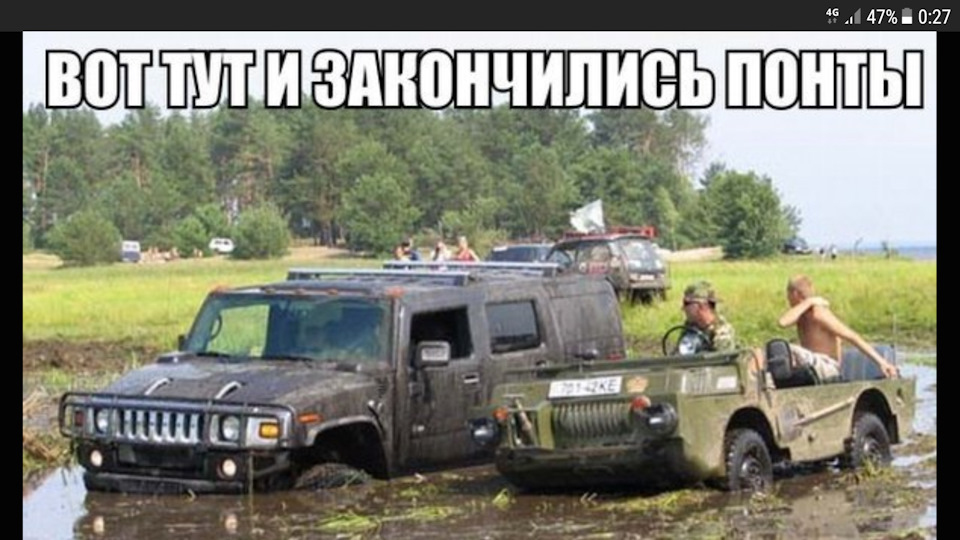 Но в целом идея проста: берем Гелик миллиона за 3, ставим на него Лапы + копию оригинального обвеса и подвеску вроде KW, дополняем это дело шноркелем да 38-ми колесами (можно сразу еще и центральную подкачку замутить) и за +- 5-6 миллионов рублей получаем то, рядом с чем будут курить 90% подготовленных внедорожников, при этом будут и понты на дороге, и толк на бездорожье.