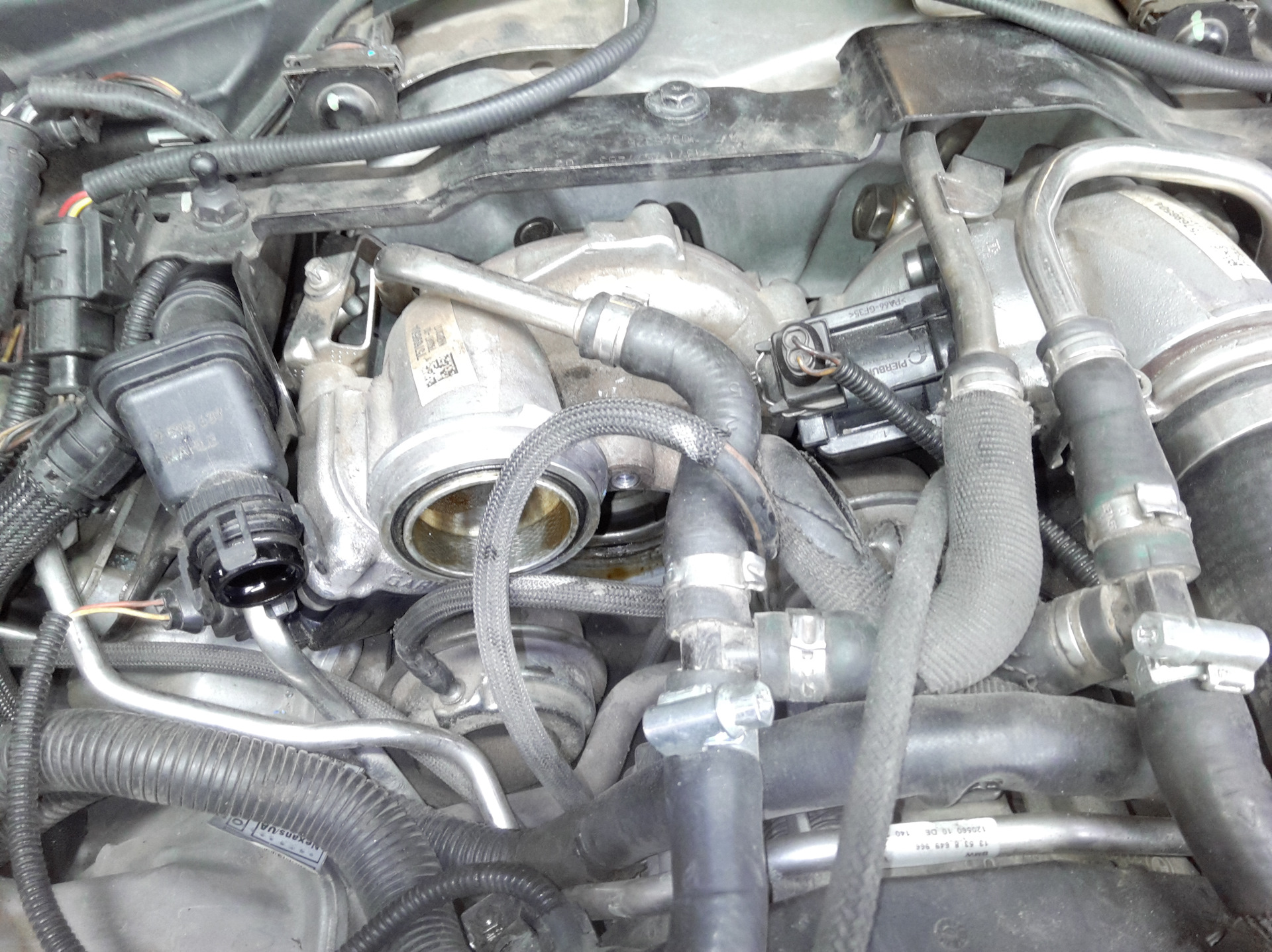Сначала под подозрение попали модуляторы давления (клапана управления). Прочистка и ревизия их исключила из списка неисправности. Расположение их не очень удобное. Для того чтобы к ним попасть нужно демонтировать расширительный бачок системы охлаждения турбин и надувочного воздуха. И интеркулер правого ряда цилиндров.