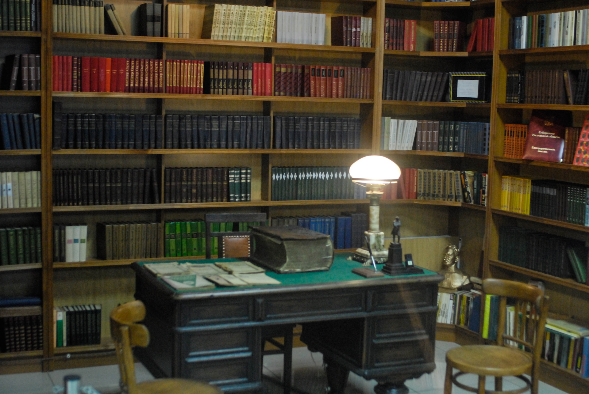 Есть несколько инсталляций комнат-кабинетов в разном стиле. Душевно смотрится. Вот бы мне такой стол! Я б в ящике маузер хранил или наган. А на зелёном суке докУменты подписывал. Соотвествующие. Ага. И над комсомальским женским волейбольным отрядом бы шефство взял. Всё, короче, понесло уже что-то. В сухом остатке крайне рекомендую остановиться поглазеть-перекусить тут на пару часиков, а если требуется ночевка, то и переночевать.