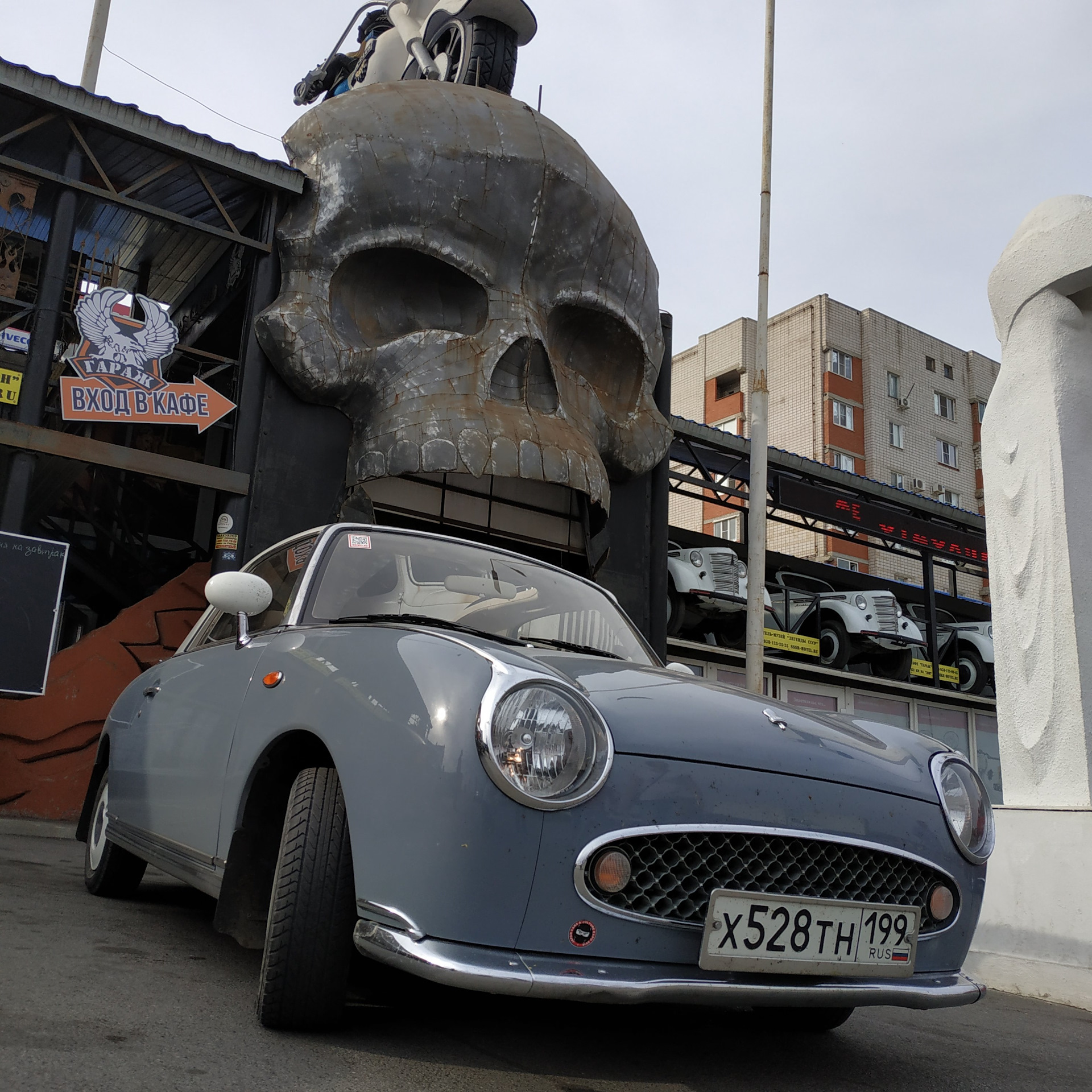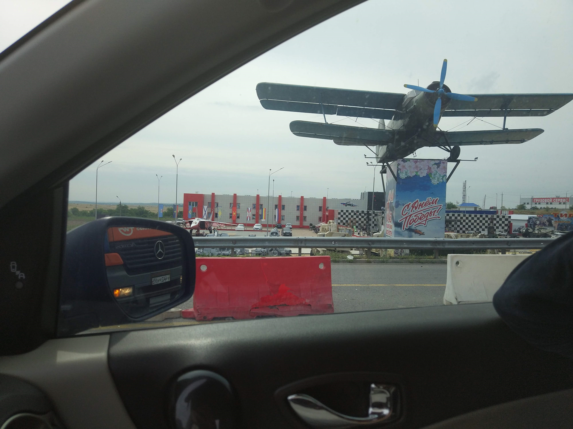 Итак, город Каменск-Шахтинск, сразу после пробки. Это не только отель, но и музей и куча всяких инсталляций вокруг, и кафе, и не удивлюсь если что-то ещё. Сразу на входе/въезде нас встречает вот такой красавец:
