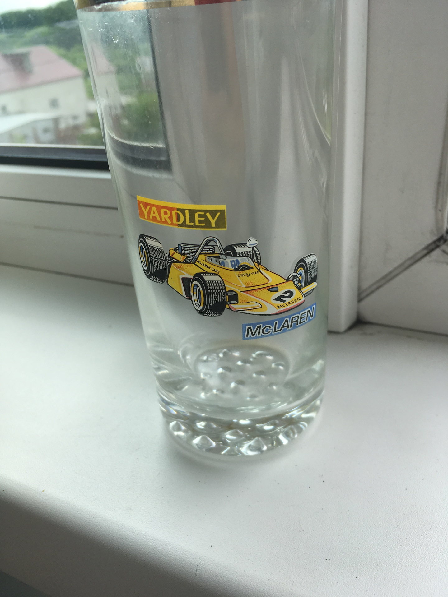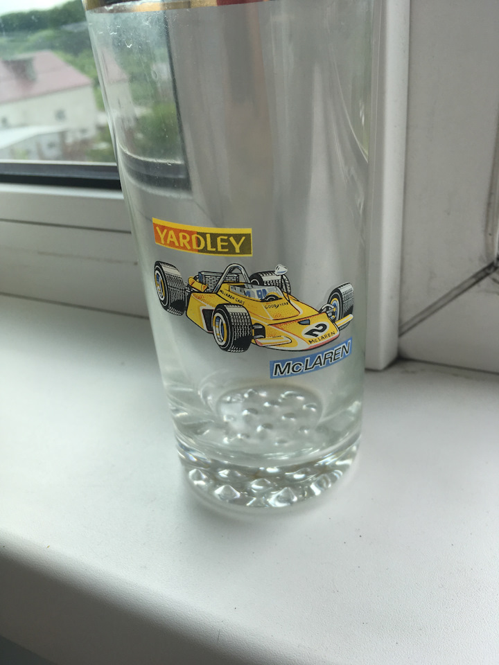 Интересная история. Стаканы с машинами Ф-1 я впервые увидел в гостях у маминой подруги как раз в Симферополе, еще в далеком детстве. Впервые тогда поехали в столицу Крыма, папа взял у дедушки "Москвич". Вообще интересно, кому в голову пришло поместить изображения болидов Ф-1 на стаканы, как выбирали модели?