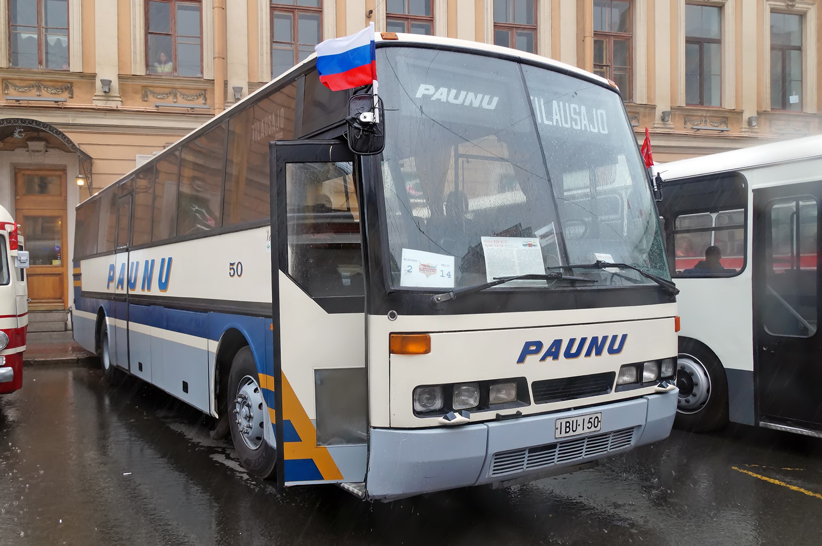 Из Эстонии впервые привезли ещё одну "мини-Зетру", одну из двух Setra S80, имеющихся в коллекции Mootor Grupp. В прошлом году на парад приезжала вторая их S80 — синего цвета, чуть более позднего выпуска.