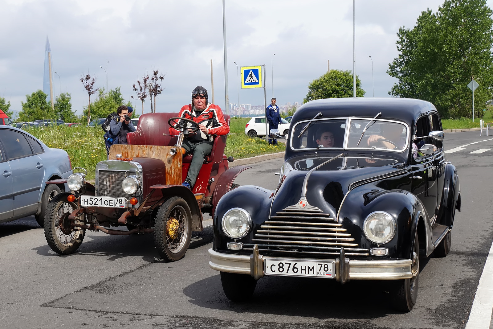 А рядом с BMW на фото попала самодельная реплика дореволюционного автомобиля Laurin-Klement. Оно даже ездит само!