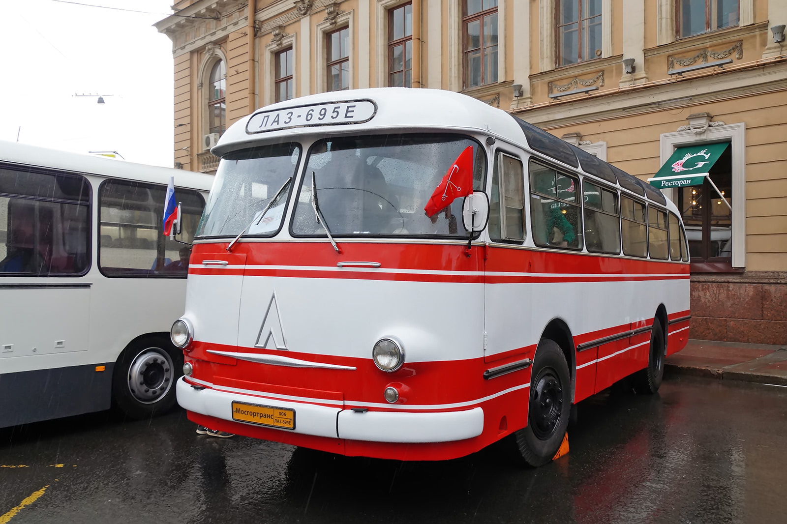 Этот "четырёхглазый" ЛАЗ-699Р уже знаком гостям питерских ретромероприятий. На сей раз машина представлена уже в несколько новом качестве. С мая "Пассажиравтотранс" запустил еженедельные ретро-экскурсии на этом ЛАЗе в рамках проекта "Ленинградский автобус". Поездки проходят каждую субботу, от Казанского собора, по предварительной записи. Подробности — на сайте перевозчика.