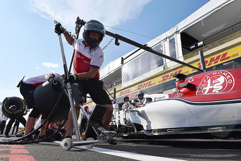 Другое дело — домкраты. Они полностью разрабатываются командами и являются очень сложным механизмом. Регламент гласит, что машину запрещено поднимать автоматически, т. е. механик должен нажать на ручку домкрата, чтобы поднять автомобиль. Но на этом регламент и заканчивается, поэтому команды разработали специальный поворотный стержневой механизм, который бы по окончанию пит-стопа позволил выдвинуть платформу переднего домкрата из-под автомобиля, после чего оба механизма роняют машину на асфальт. Именно этот механизм и имеет существенные отличия у топ-команд и у команд второго эшелона. У более богатых гоночных коллективов этот механизм соединен с системой пит-сигналов, поэтому когда главный механик подает сигнал, что пит-стоп закончен и машина может стартовать, то пневматический/гидравлический механизм приводится в действие у них специальной кнопкой, а у более бюджетных коллективов — вручную механиком.