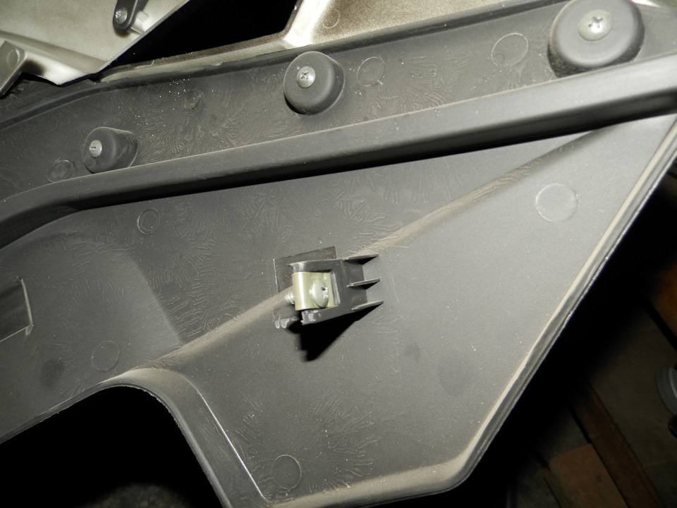 Крепление бокового пластика снизу спереди к радиатору, было закручено "само в себя" и ничего не держало.