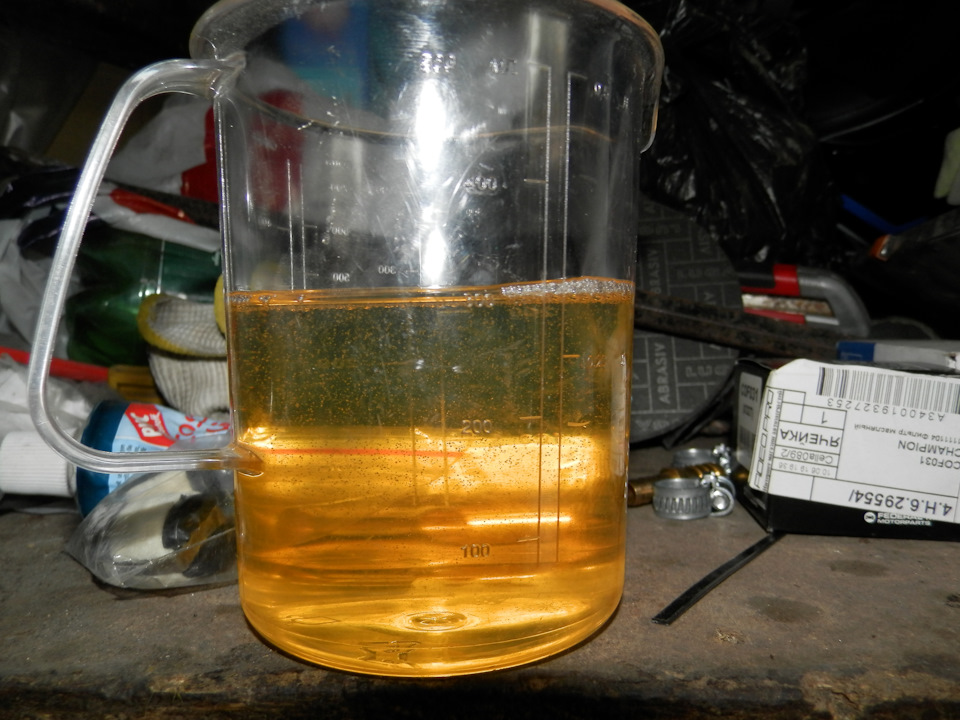 Слилось с каждого пера по 250мл. Масло черно со взвесью всякого мусора. Залил 250мл и руками ппочал, так же как и было, вилка в пустую работала, добавил еще 50мл, появилось усилие и вверх и в низ, вилка заработала. Ради эксперимента добавил еще 50мл, вилка после середины хода стала уператься, еще 50мл, почти под верх масло было, клинить стала при 2см хода. слил 100мл, осталось 300мл в пере и так оставил. Понравилась как перо работает. Посмотрел на слитое свежее масло там куча взвеси. По логике масло мне не нужно на запас, объем 1л., в перья по 300мл, 400мл лишнего. В общем остатками масла промыл перья.