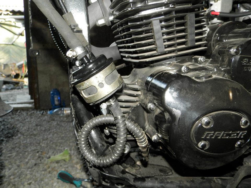 У меня схожий мопед есть, на коробе воздушного фильтра все заглушки стояли, но меня напрягал сапун висящий в атмосферу (вспоминаем про 1 цилиндр, который будет в картере работать как насос), проделал аналогичную процедуру. Не понимаю вообще, как такое допускают либо производители, либо сборщики.