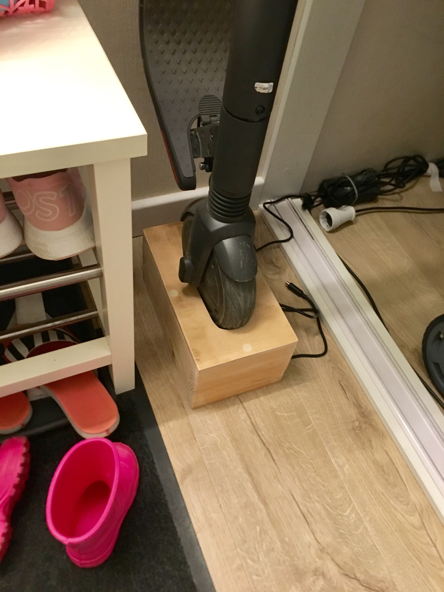 Интересное решение. Я вот тоже думаю, что бы сделать…Возьму на заметку. Лично для меня хранить в квартире не вариант — занимает место, по этому планирую хранить в "межквартирном тамбуре"…он небольшой, но в сложенном состоянии вполне реально…единственное: у меня аппарат на подобии Koogo m5 по габаритам — значит площадку нужно массивнее…и что-бы подстраховаться от кражи — в стену петлю вбить и на замок цеплять, так как тамбур не всегда закрывают, да и сосед бухарик. Кириллу спасибо за идею, буду думать .
