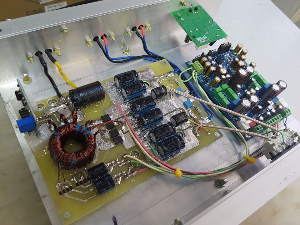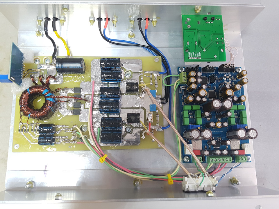 К платам был прикручен оптический конвертер для подачи сигнала с тестового DSP процессора и пробной отслушки в автомобиле.