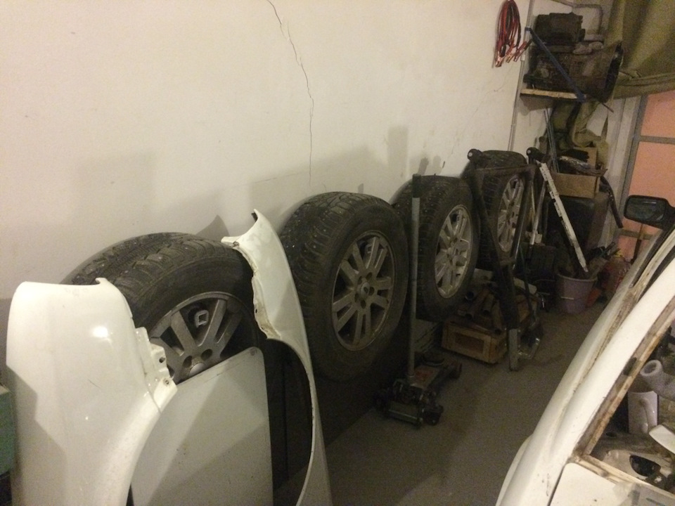 С появлением Бегемота все встало с ног на голову. Во-первых, огромные, тяжеленные колеса не влезали на полки. Во-вторых, весят они столько, что в процессе закидывания их под потолок вполне можно покалечить спину. В итоге так они и пролежали стопкой у задней стены полтора года.