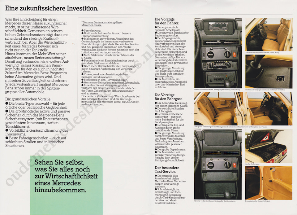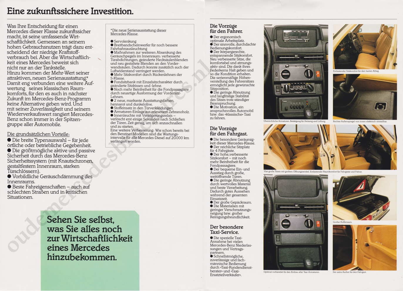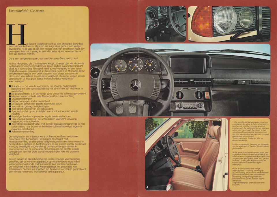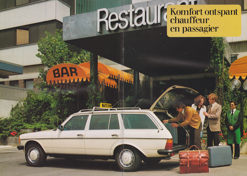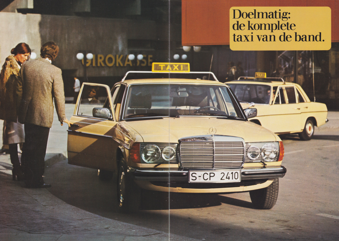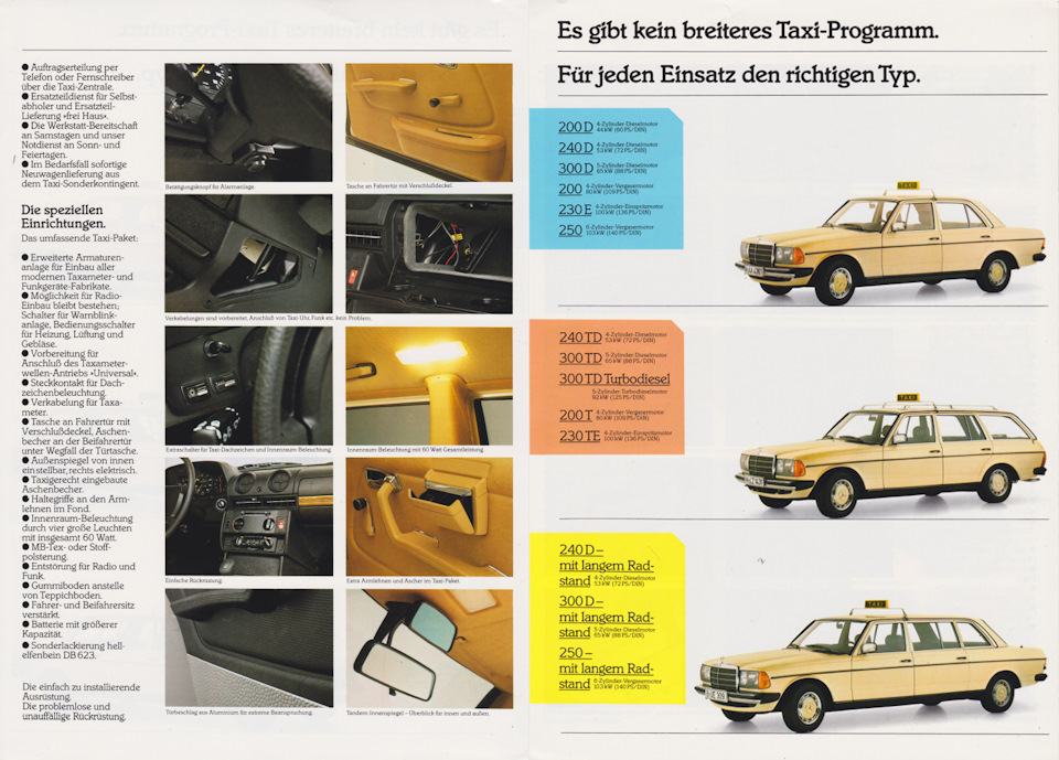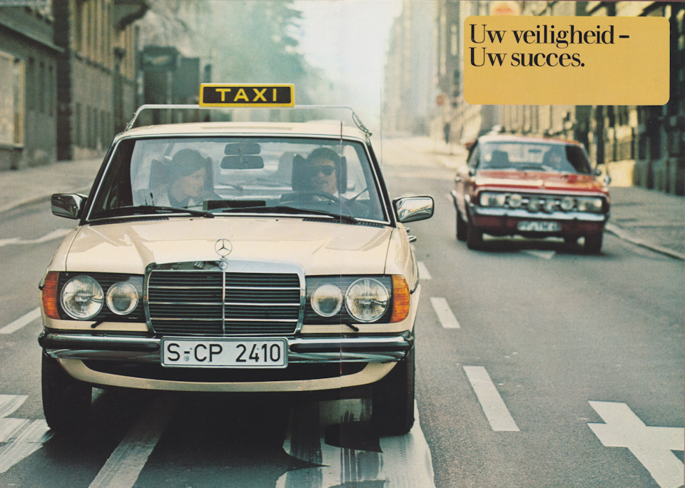 В 1983 году была издана еще одна небольшая брошюра, рассказывающая о преимуществе выбора автомобиля марки Мерседес для работы в такси. Слоган "инвестиция в будущее".