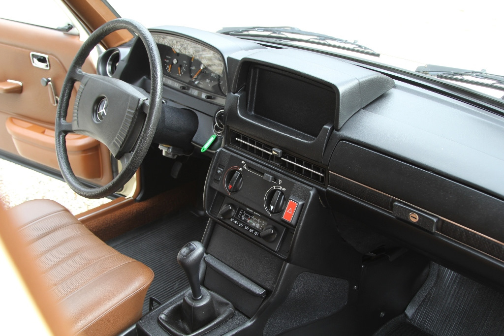 Мерседес 300D 1979 года выпуска. Автомобиль принадлежал фирме Karl und Hans-Jochen Kipp. Он был в классе премиальных автомобилей этой фирмы, чем объясняется наличие мотора 3 литра, отличное состояние машины и пробег 199 815 км. В качестве такси автомобиль работал до 1995 года. Присутствуют все опции исполнения такси плюс дополнительно опционально установлен люк на крыше. Кстати, опция прямой спинки заднего дивана отсутствует и сзади есть подлокотник, что тоже можно объяснить премиальным сегментом использования машины.