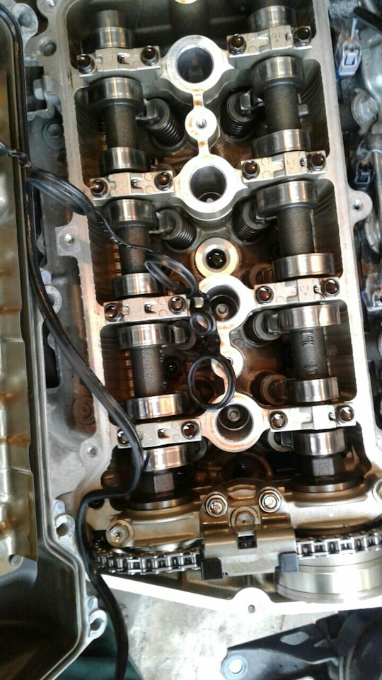 Так вот, изменений на распредвалах больше не происходило (там именно впуск или выпуск), хотя они должны были остаться вовсе без кулаков от такой езды.