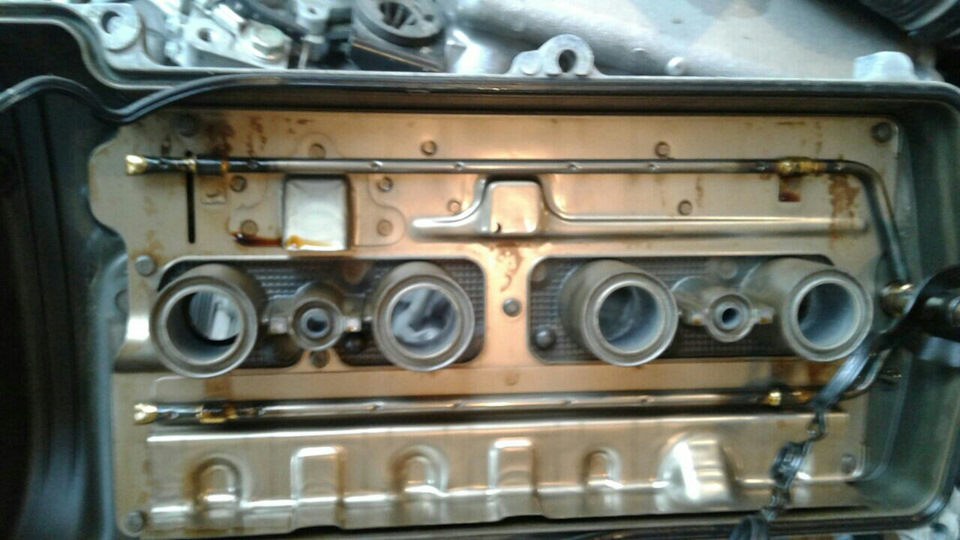 Клапанная крышка с небольшим количеством лака, под клапанной тоже присутствует: