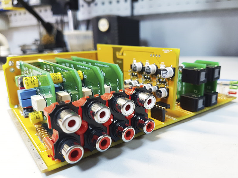 Собрали плату процессора и плату выхода с ЦАПом AK4458 на борту, модули выхода с предусилителями, модули оптических передатчиков цифрового выхода.