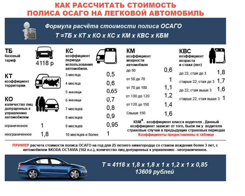 Стаж — при условии безаварийного вождения стоимость полиса падает, начальный уровень страхования(новичёк) начинается от 140% базового тарифа (для каждого автомобиля он индивидуальный)