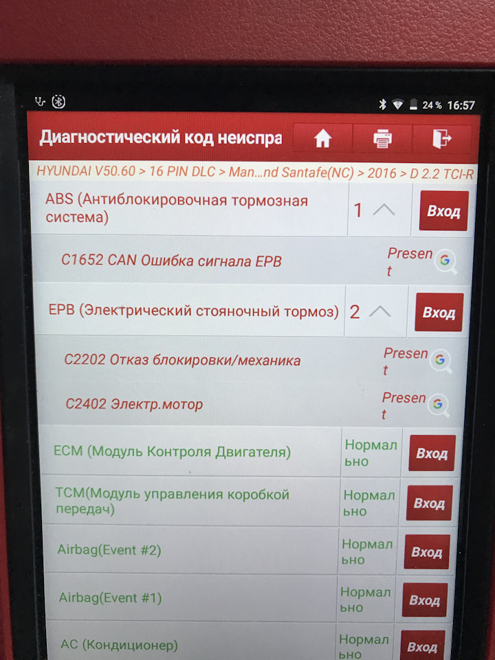 Добрый вечер. У меня Гранд Санта Фе. При постановки на ручник выпала ошибка EPB и auto Hold сам ручник не трогался. С ребятами знакомыми добрались до привода ручника сняли на стол, вскрыли получается троса были сжаты до максимума. Развили до максимума в ручную, троса ходят плавно не закисли, вот только шестерню не посмотрели… поставили всё на место поменяли и отрегулировали колодки при полностью отпущенных тросах.Думали всё будет хорошо. Ничего не изменилось.
