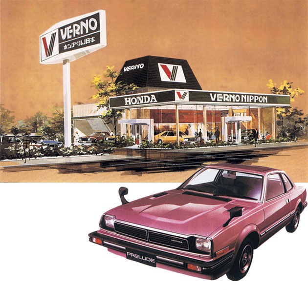 С разработкой Prelude, готовой к производству, Honda решила изобрести отдельного дилера, идею бренда «Verno» со свежими новыми взглядами на их стратегию продаж и создать дружескую атмосферу для всех новых и постоянных клиентов. Представительства Verno на протяжении многих лет использовали одну и ту же палитру цветов (красный / зеленый) в своих знаках и маркетинге. Выставочные залы были выставлены для того, чтобы представить новую топ-модель со старшими моделями после костюма. Уникальный знак в форме многоугольника показывал прохожему новый дилерский центр и громко отображал логотип «V». В верхней части дилерских центров был указан логотип Verno, а также надпись «Verno Nippon» с указанием места или города после названия. «Хонда» была выставлена по бокам дилерских центров и на некоторых знаках, чтобы отличить, что это 100% Хонда.