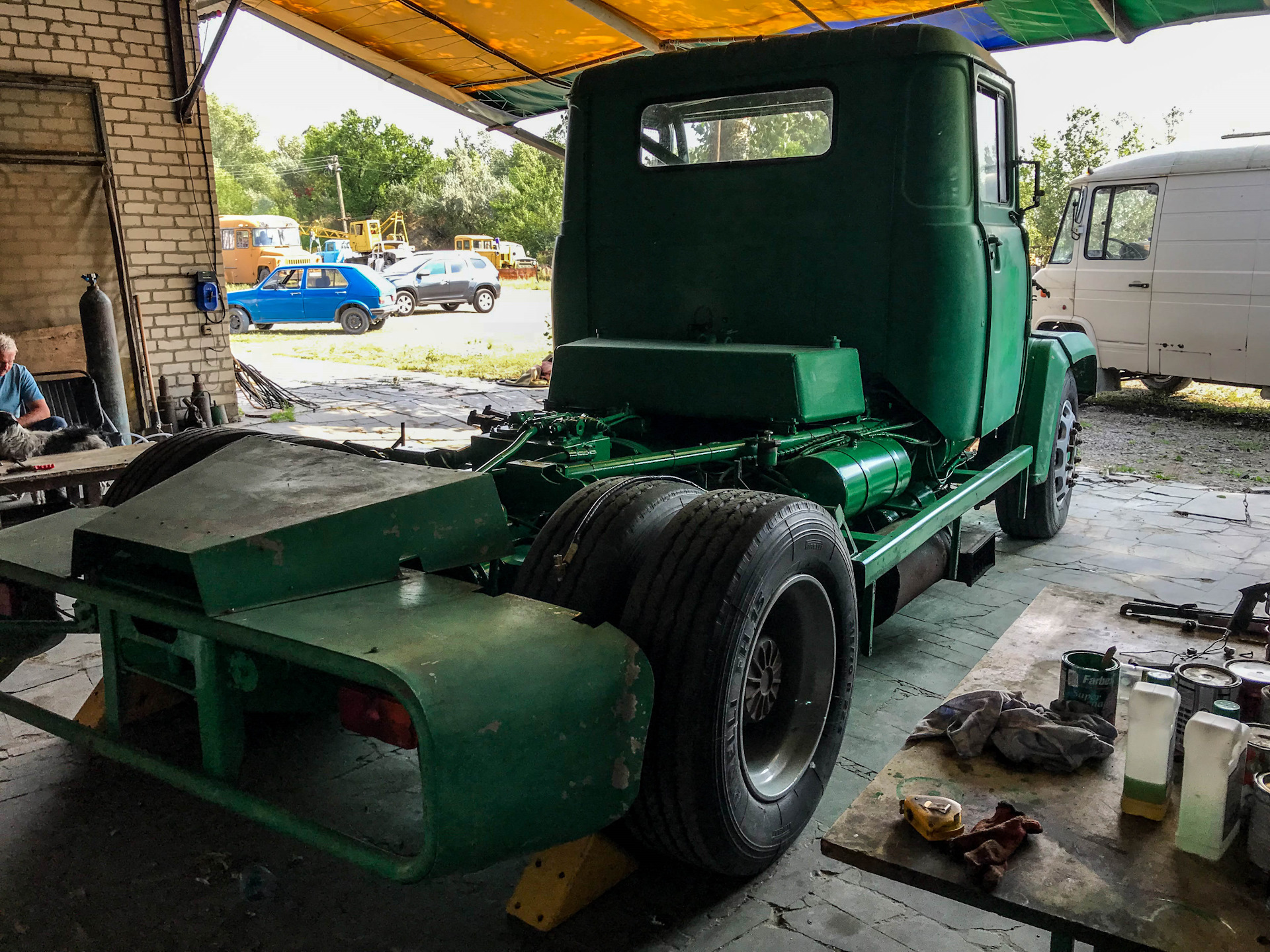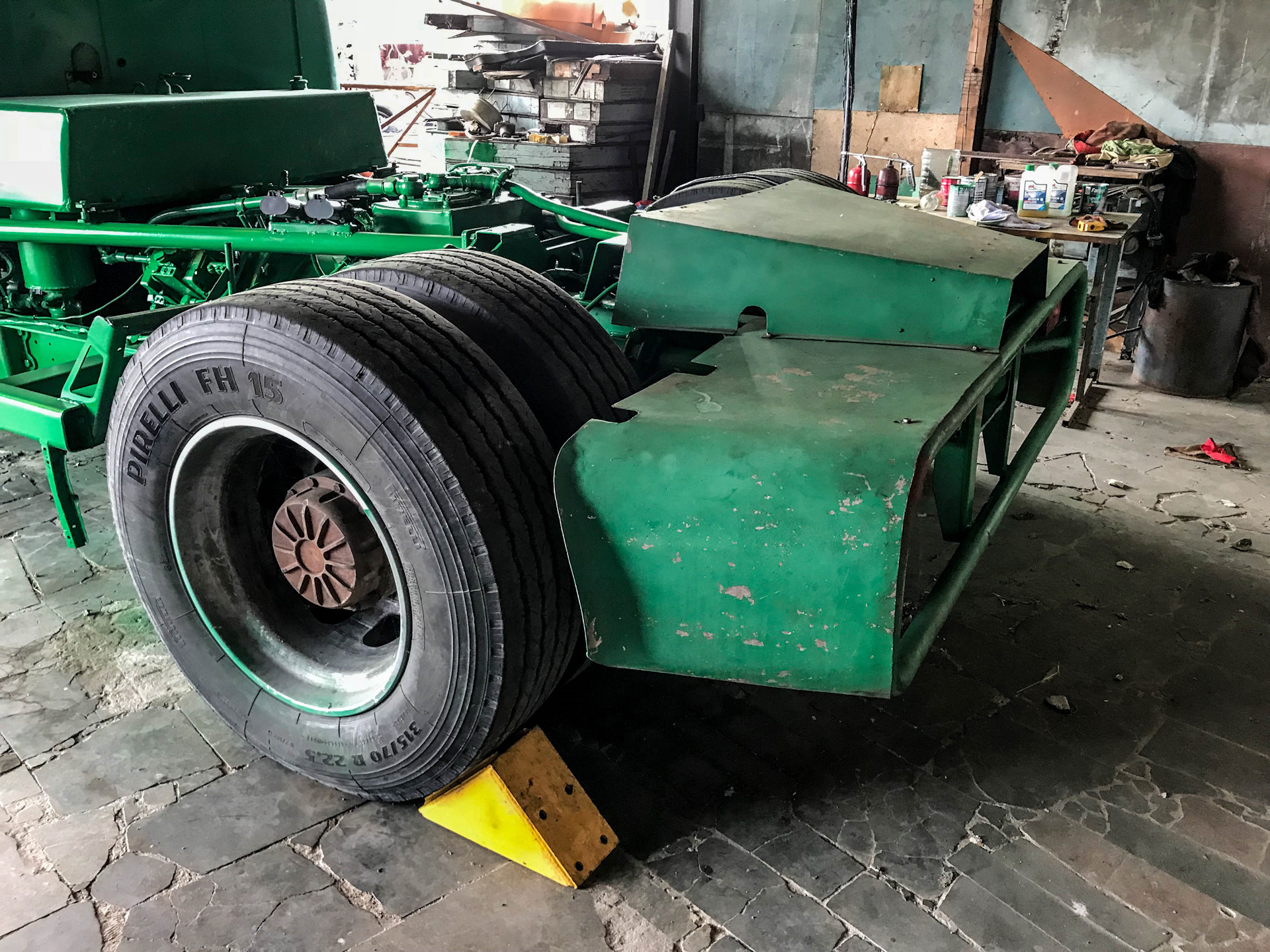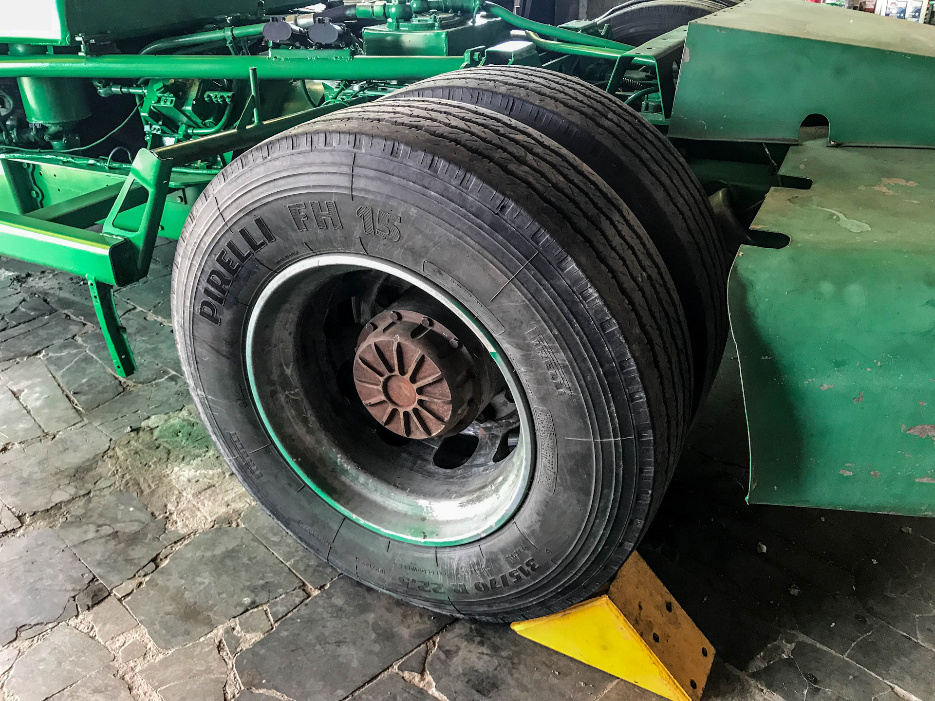Легкосплавные диски, шины Pirelli размерностью 315/70 R22,5 (они до сих пор стоят на машине) и мощные тормоза (производства фирмы Lucas) были куплены за границей за валюту, ибо ничего подобного наша промышленность не предлагала.