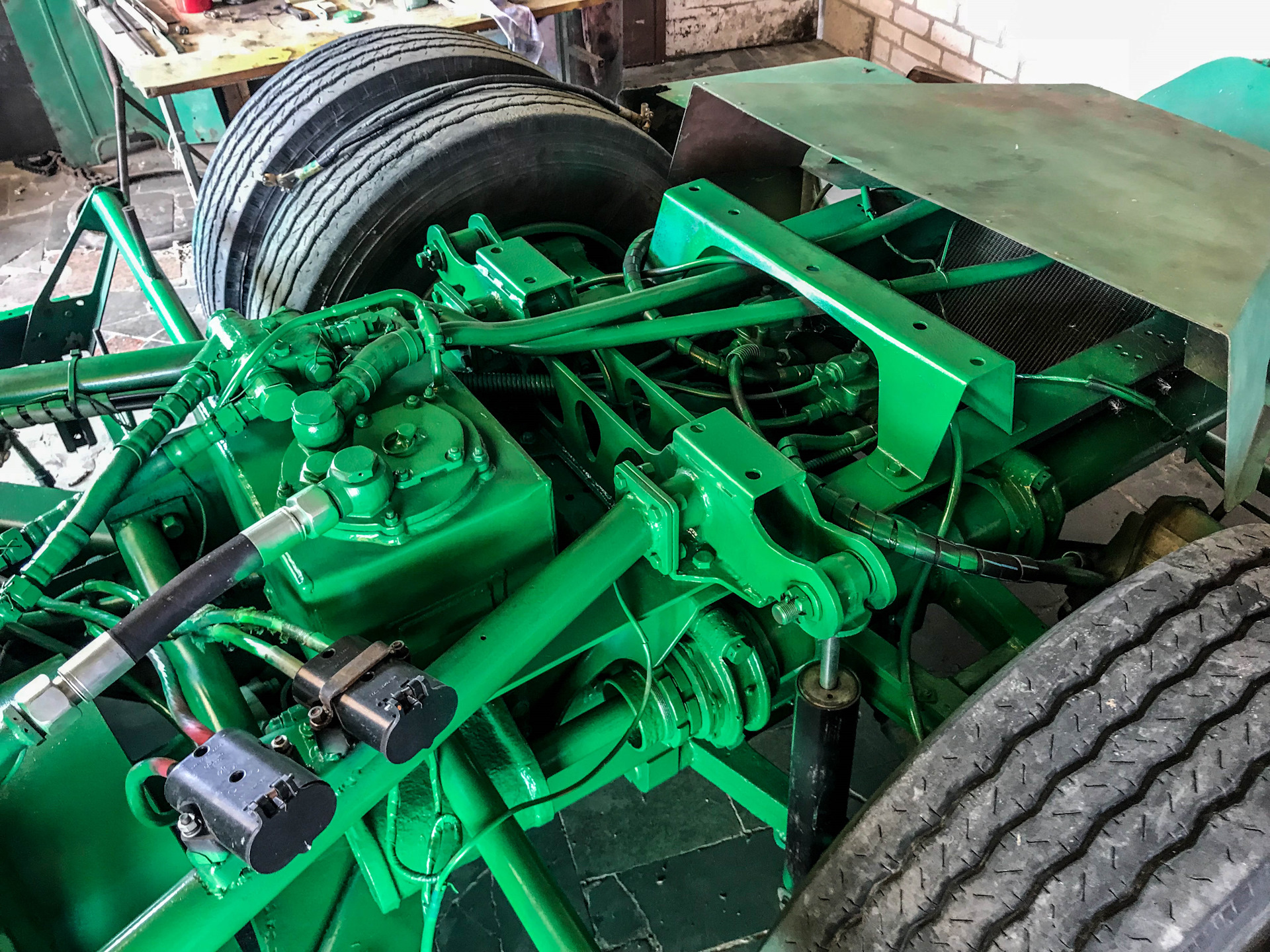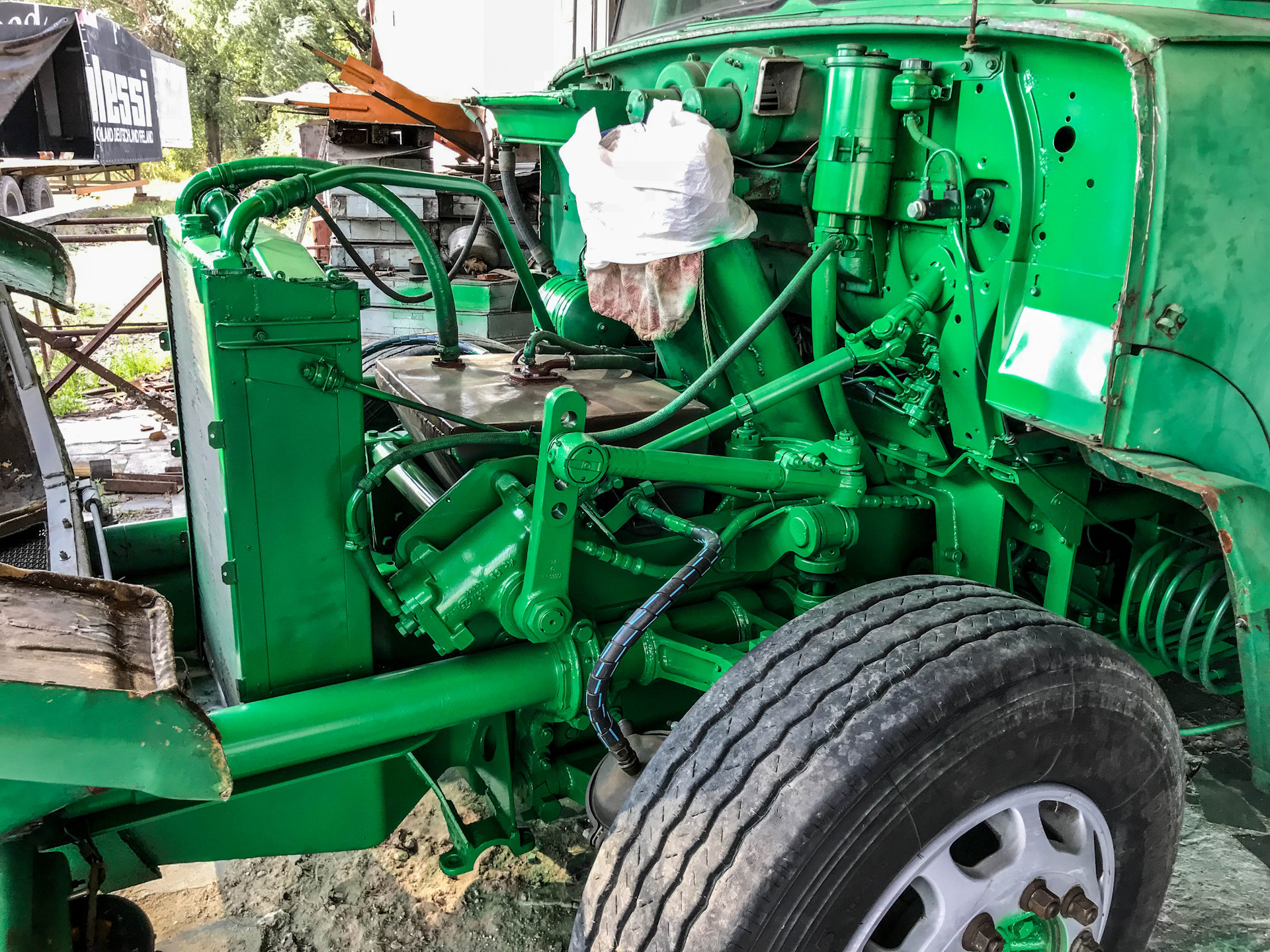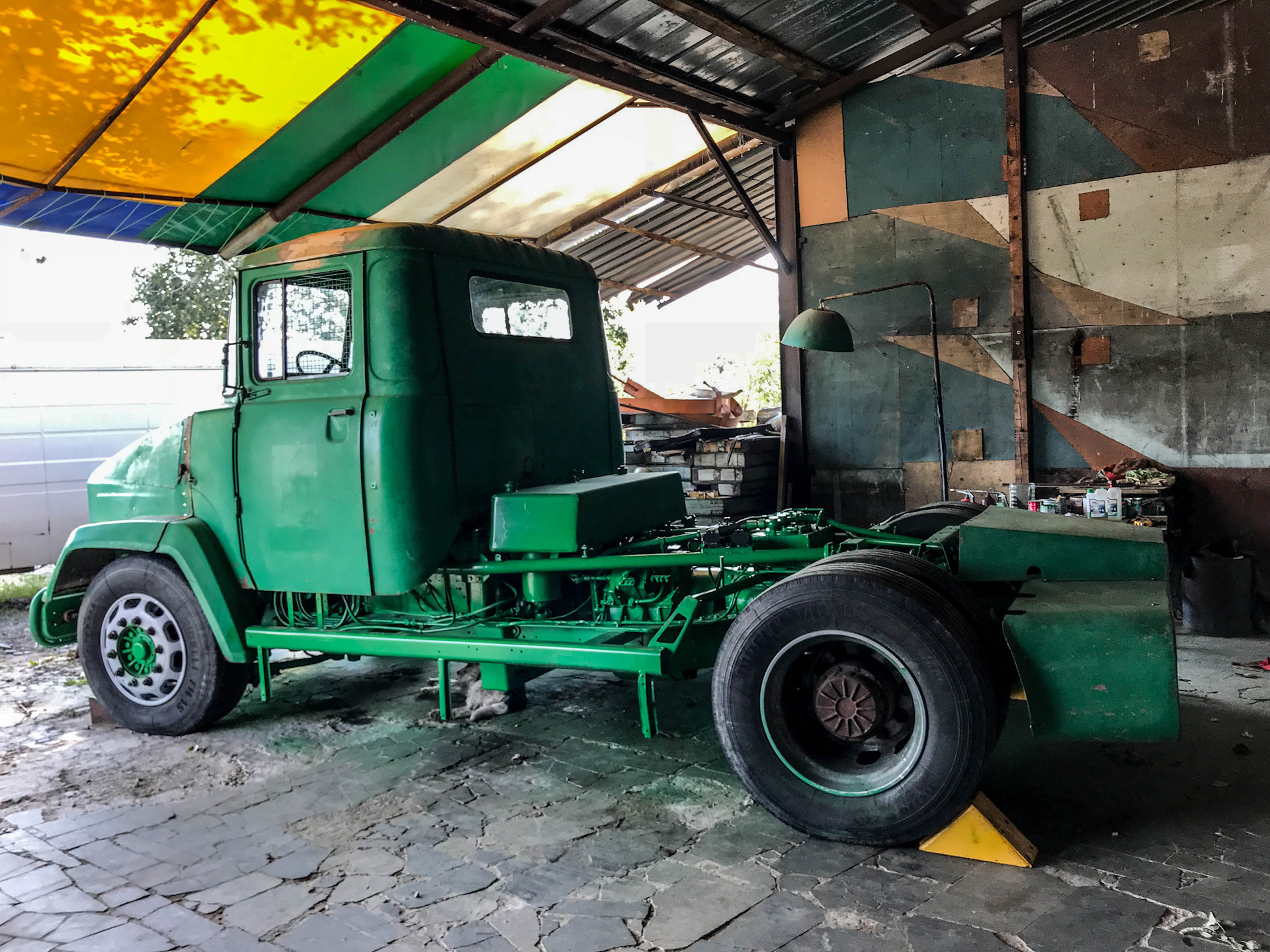 Легкосплавные диски, шины Pirelli размерностью 315/70 R22,5 (они до сих пор стоят на машине) и мощные тормоза (производства фирмы Lucas) были куплены за границей за валюту, ибо ничего подобного наша промышленность не предлагала.
