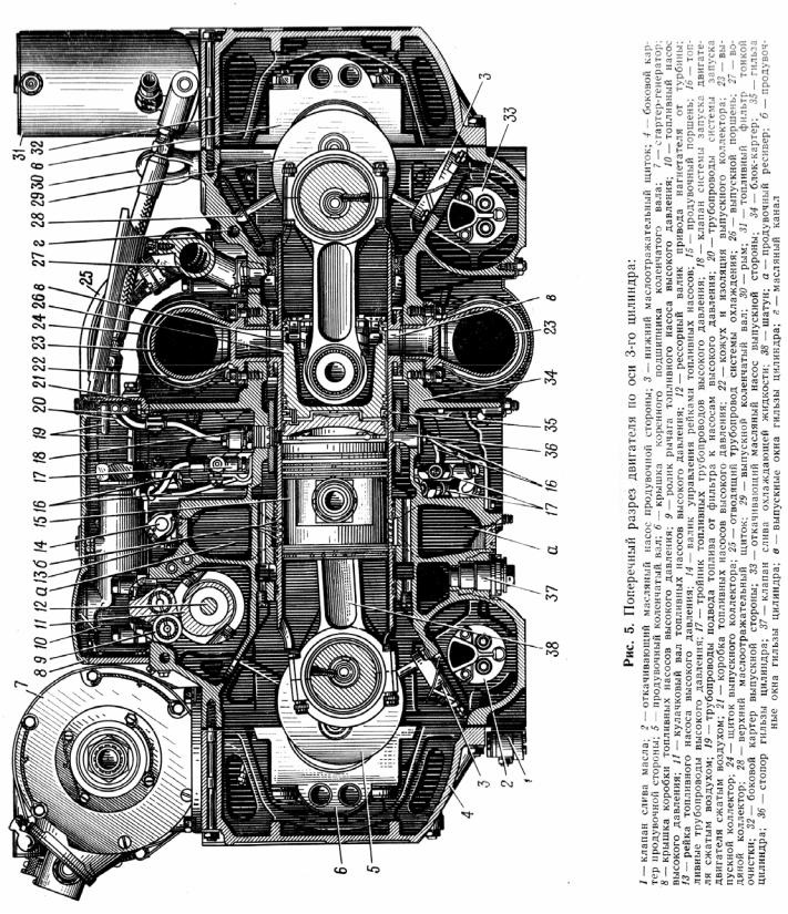 Именно этот оригинальный 2-тактный 5-цилиндровый (по 2 поршня в каждом цилиндре) рядный агрегат рабочим объемом 13 литров и приводит машину в движение! И если в "танковом" исполнении его мощность составляет 750 л.с., то для гоночного КрАЗа мотор форсировали практически до 1000 л.с., а в настоящее время после небольшой модернизации конструкции отдача установки вплотную приблизилась в 1100 лошадкам. Для гонок данный двигатель настроили под работу на дизельном топливе, хотя путем легких манипуляций ему можно вернуть многотопливность: можно заливать хоть бензин, хоть керосин, хоть любую-другую горючую жидкость.