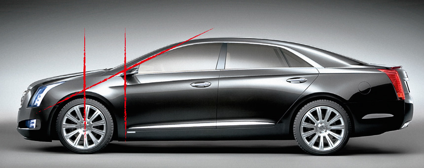 Если вы ничего не слышали про «расстояние престижа», значит, вообще не читаете автомобильных новостей. Увеличенное расстояние между передней осью и лобовым стеклом (в английском его обозначают термином dash-to-axle) — главный дизайн-фетиш современности, который, как уверяют пресс-релизы, и определяет дороговизну внешнего вида. Именно ради этого толкали переднюю ось к носу на своих машинах Audi, Volvo, Volkswagen, Toyota, Chevrolet и даже Bentley. Самое интересное, что строгой нормы тут нет и мериться в этом вопросе принято не сантиметрами, а тем, куда попадает линия, продолжающая стойку лобового стекла. Престижный «дэш-ту-эксл» — если она целит в ступицу переднего колеса, но высший класс — если в пятно контакта. Это соотношение формирует визуальный размер моторного отсека, а чем он длиннее, тем, как известно, респектабельнее автомобиль, — такое правило уходит корнями к многоцилиндровым экипажам 30-х годов. Хотя можно копнуть еще глубже.