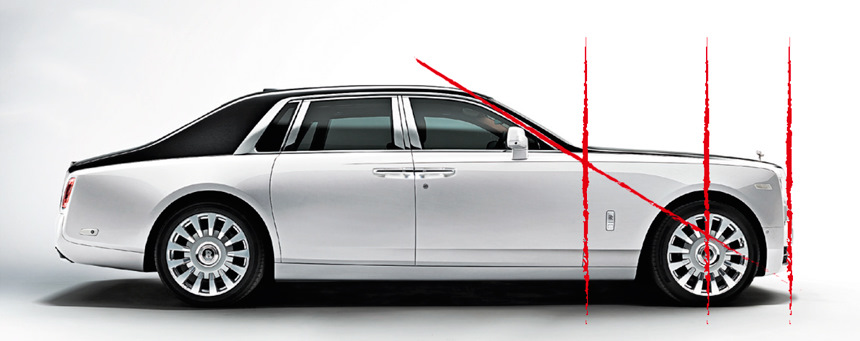 К слову, в диаметрах колес принято мерить не только базу, но также длину свесов и высоту кузова. Общая закономерность проста: чем дешевле машина, тем выше она в таких «попугаях». И наоборот, у благородного автомобиля нос должен быть величиной примерно с одно колесо, задний свес — в два раза больше, а «рост» — строго два диаметра. Правда, и это еще не все.