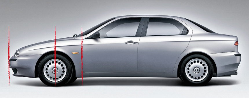 Особо показателен пример Альфы 156. Посмотрите на нее в профиль — нескладный автомобиль с огромным носом, тяжелыми бортами и коротким хвостом. Не узнаете? Все дело в ракурсе. «Никто не смотрит на машины строго сбоку и снизу, это взгляд глазами собаки, — объясняет Владимир Пирожков. — В реальной жизни мы видим автомобили в ракурсе три четверти немного сверху, и дизайнеры этим активно пользуются».