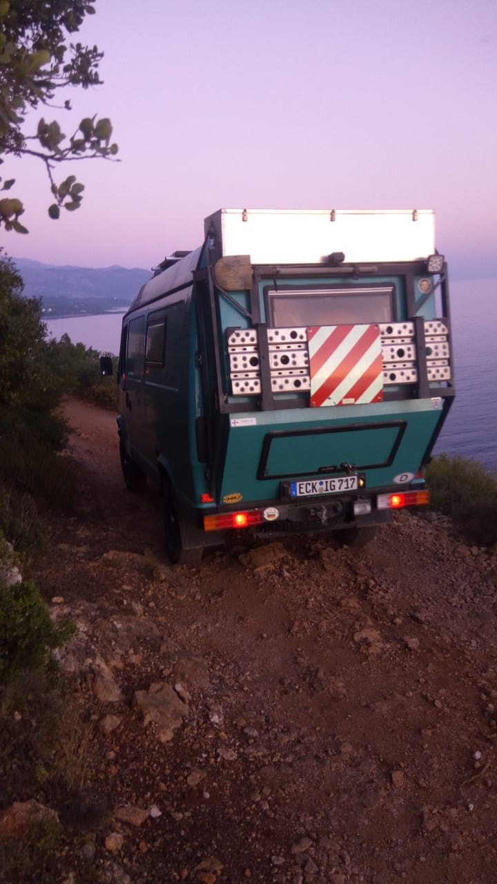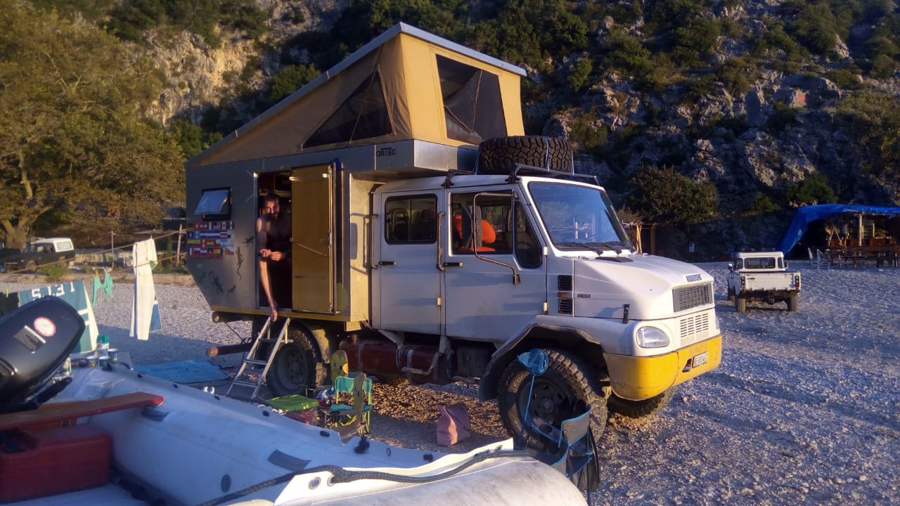 Поболтали с хозяином — приехал с семьей из Швейцарии специально на Гжипе, кемпер делал сам.