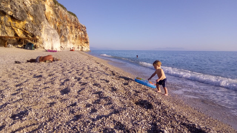 Что я могу сказать. Пляж Гжипе страшно крут! Мало людей, очень чистая вода, и вообще чисто, мелкая очень приятная галька, умеренно плавный заход в воду (не резко, и не слишком плавно, самое то и для детей, и для взрослых). Слева (если стоять лицом к морю) в море далеко уходят скалы с пещерками, и в пещерках даже не насрано! На скалах есть нырки, мы это очень уважаем:)