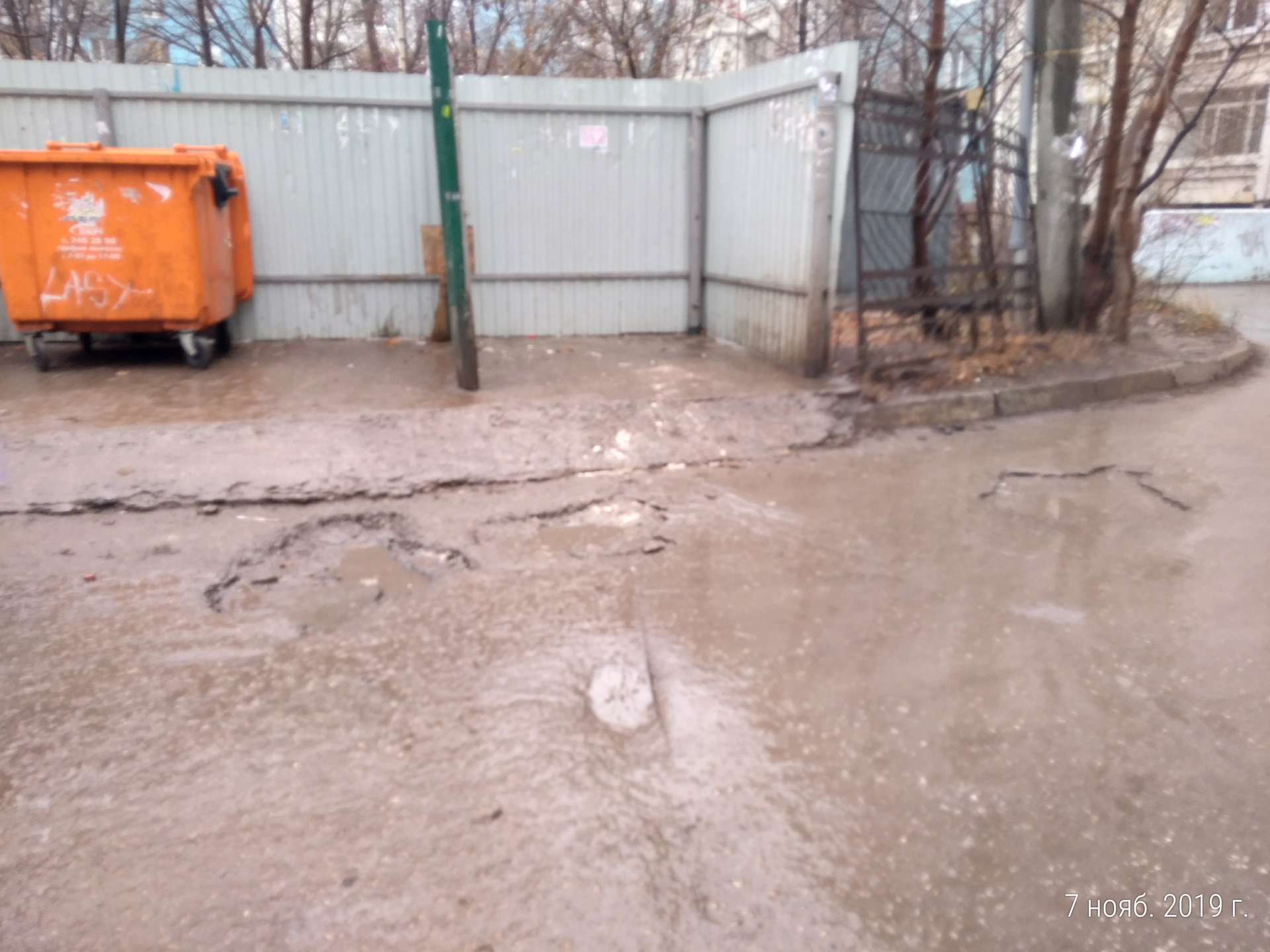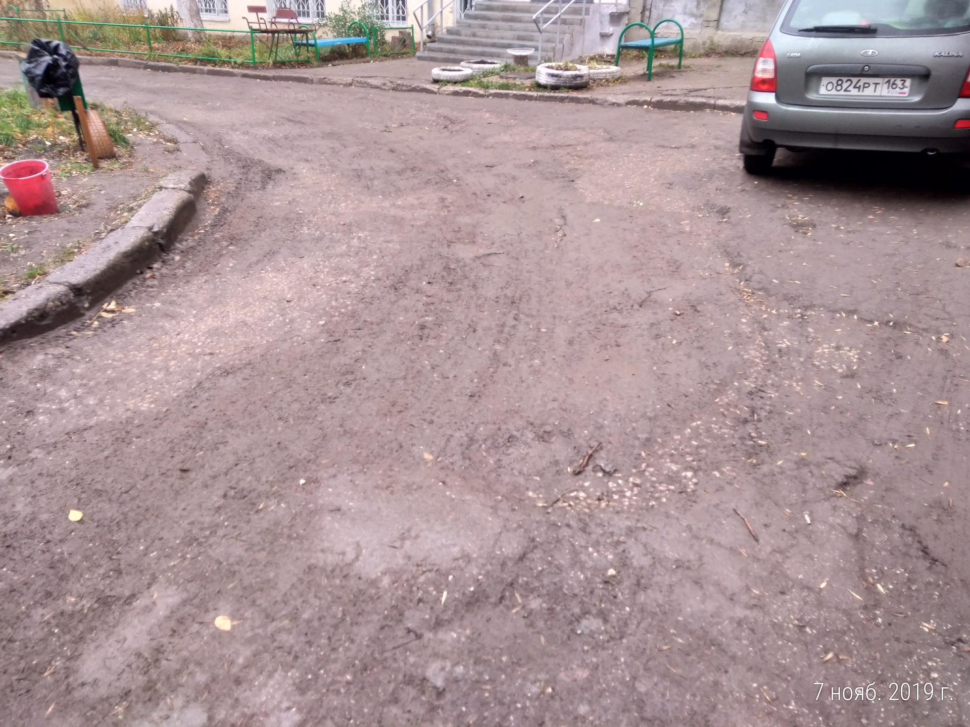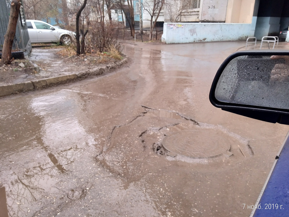 Возле дома постоянно течет ручеёк от проклятых коммунальщиков, асфальт линяет, сбрасывает слой за слоем.